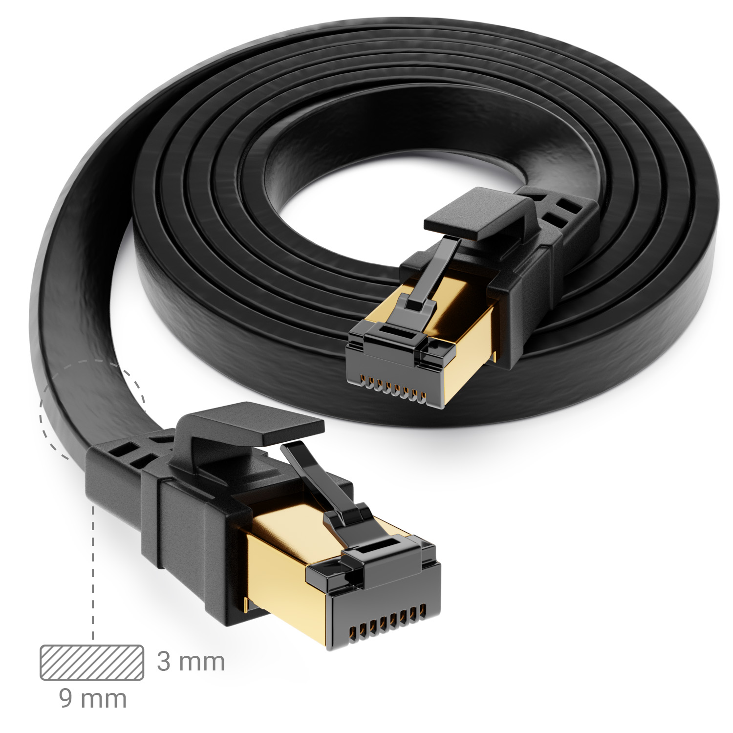 Bitte Beachten: CAT8.1 Kabel sind wegen der Schirmung etwas dicker (3 mm)