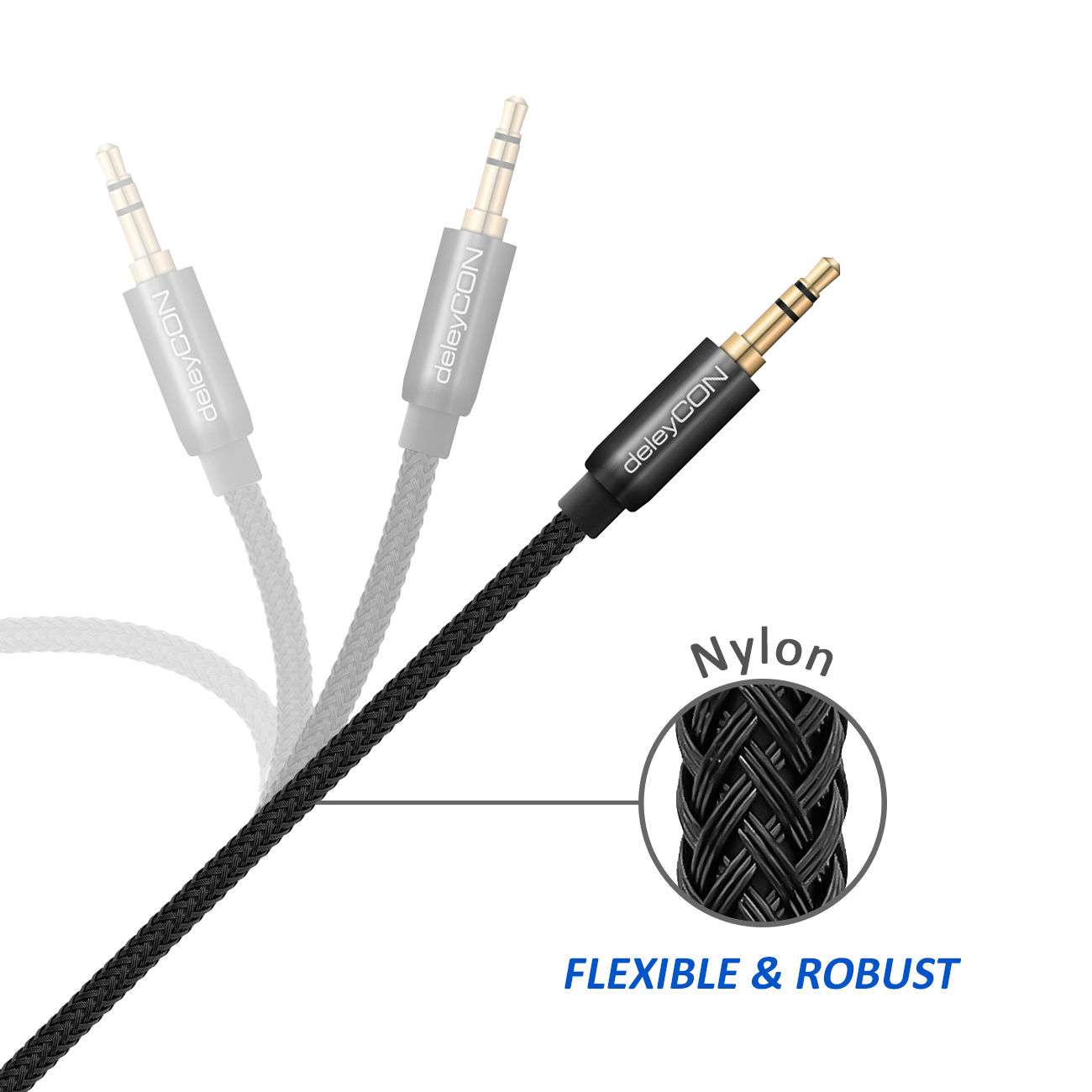 deleyCON Kabel besitzen besonders leitfähige, vergoldete Steckerkontakte, die für eine verlustfreie Tonübertragung sorgen.