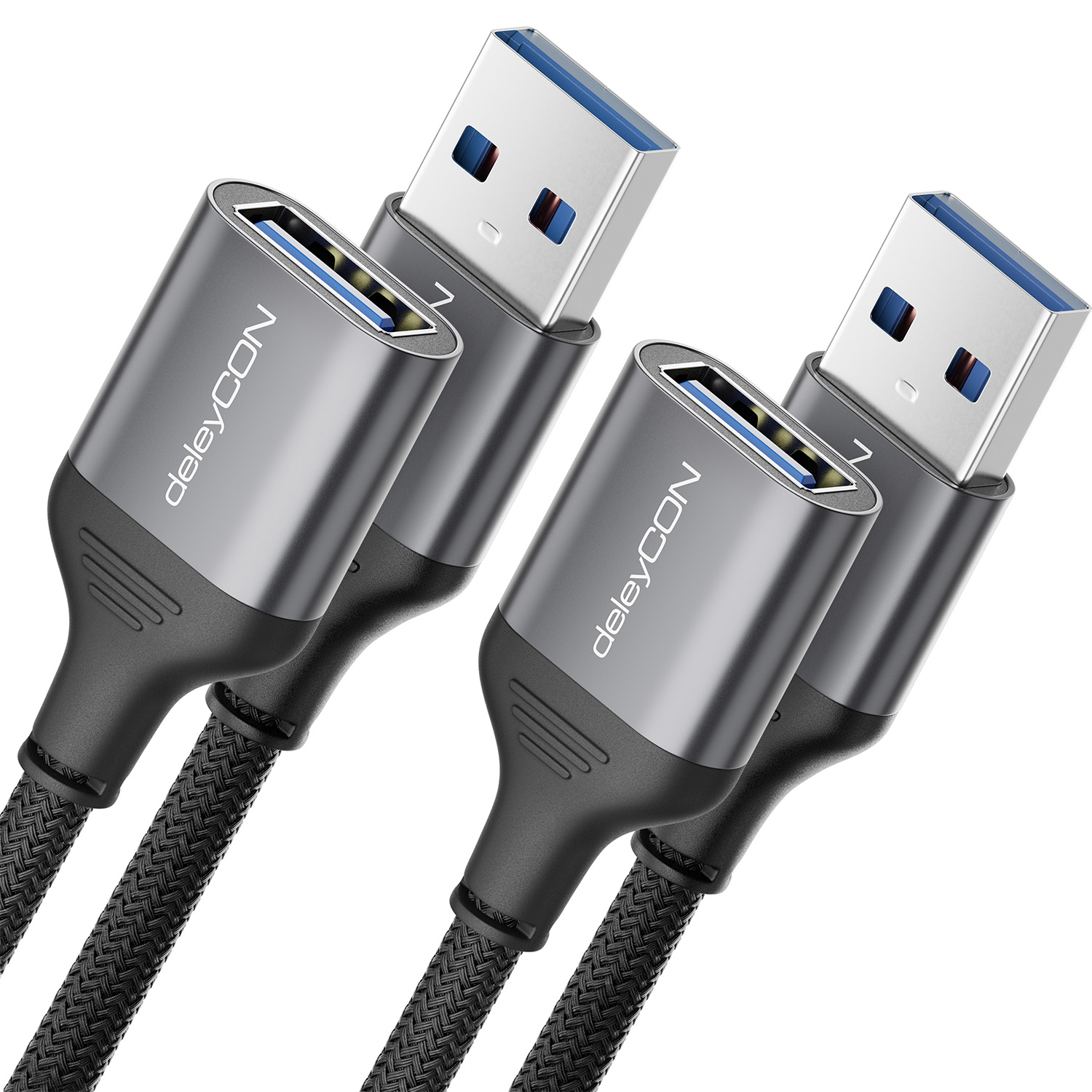 deleyCON 2x 2m USB 3.0 Verlängerungskabel (5Gbps, A Stecker/A Buchse, Nylon)