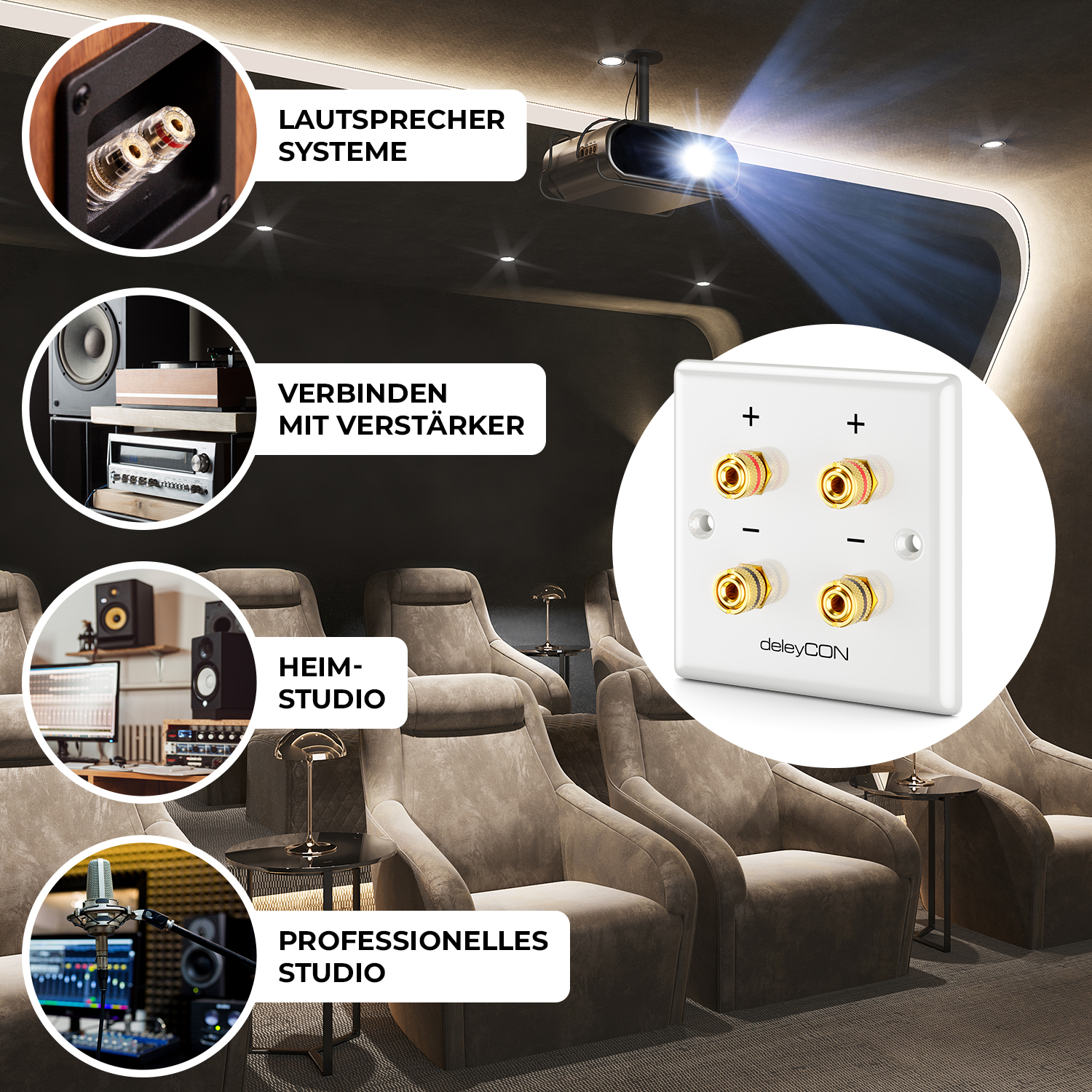 deleyCON 4x Multimedia Lautsprecher Anschlussdose Wandplatte für 1 Lautsprecher