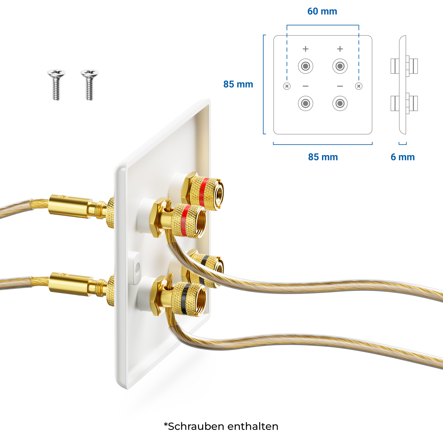 - Wandanschlussdose für Surround und Hi-Fi Lautsprecherkabel