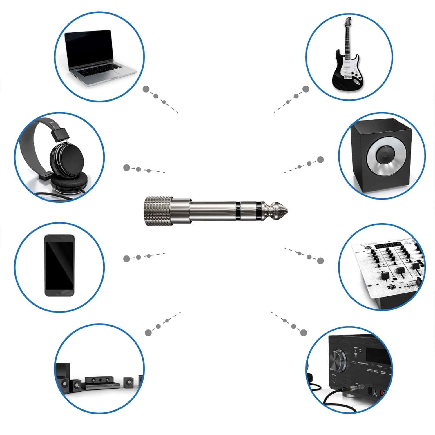 - Audio Klinke Adapter zum wandeln vorhandener 6,3mm Klinke Buchse zu 3,5mm Anschlüsse