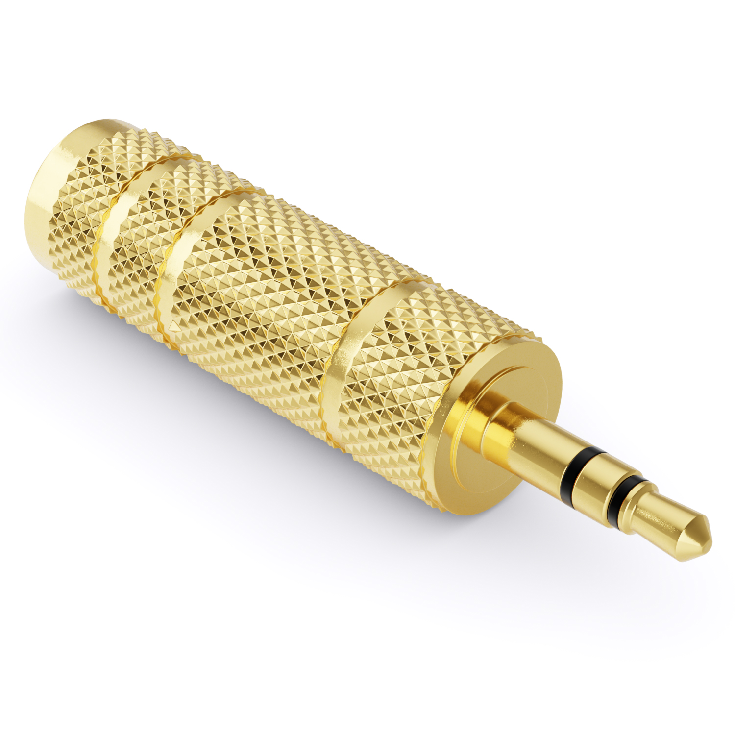Der genormte, vergoldete Klinken Adapter ist absolut passgenau und somit ist eine vielfältige Einsatzmöglichkeit an einer Vielzahl von Geräten möglich. Der 24K vergoldete Adapter ist korrosionsbeständig und bietet Ihnen eine längere Lebensdauer. Das 360° Grad Griffprofil unterstützt das einfache Ein- und Ausstecken enorm.