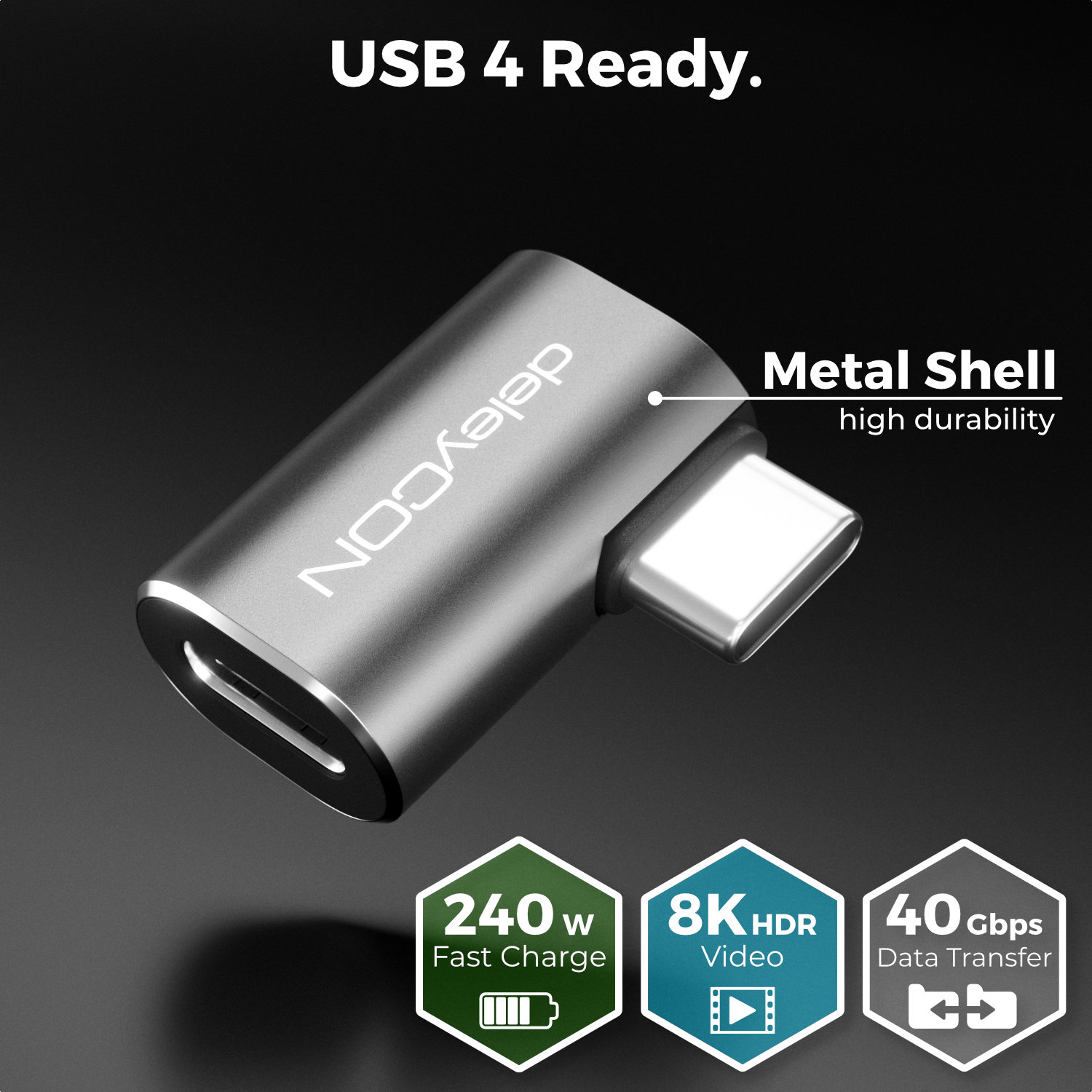 deleyCON 2x USB-C 90° Adapter (40Gbps/240W/8K) für Laptop/Smartphone/PC
