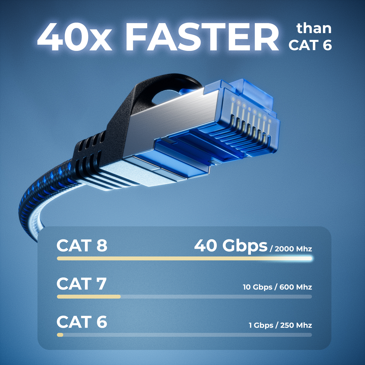 deleyCON 1,5m CAT8 Netzwerkkabel (40 Gbit/s, S/FTP, 100% Kupfer, RJ45, Nylon)