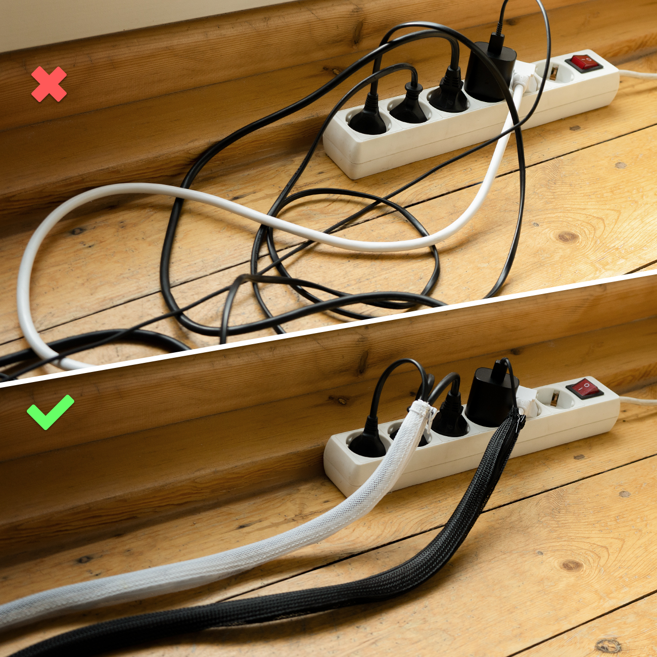 Schluss mit Kabelsalat - die flexiblen und robusten Kabelschläuche von deleyCON sind optimale Ordnungshelfer für Haushalt, Büro, Schreibtisch und Hobbyraum.