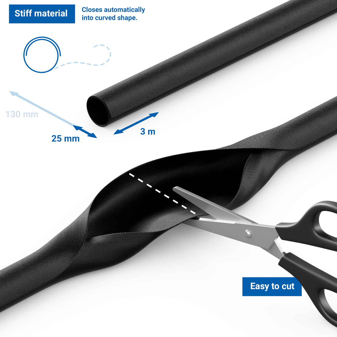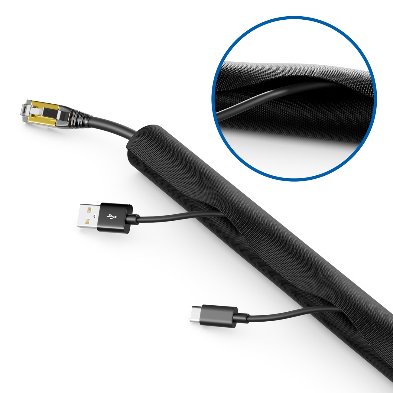 Schluss mit Kabelsalat - der selbstschließende, robuste Kabelschlauch von deleyCON ist ein optimaler Ordnungshelfer für Haushalt, Büro, Schreibtisch und Hobbyraum.