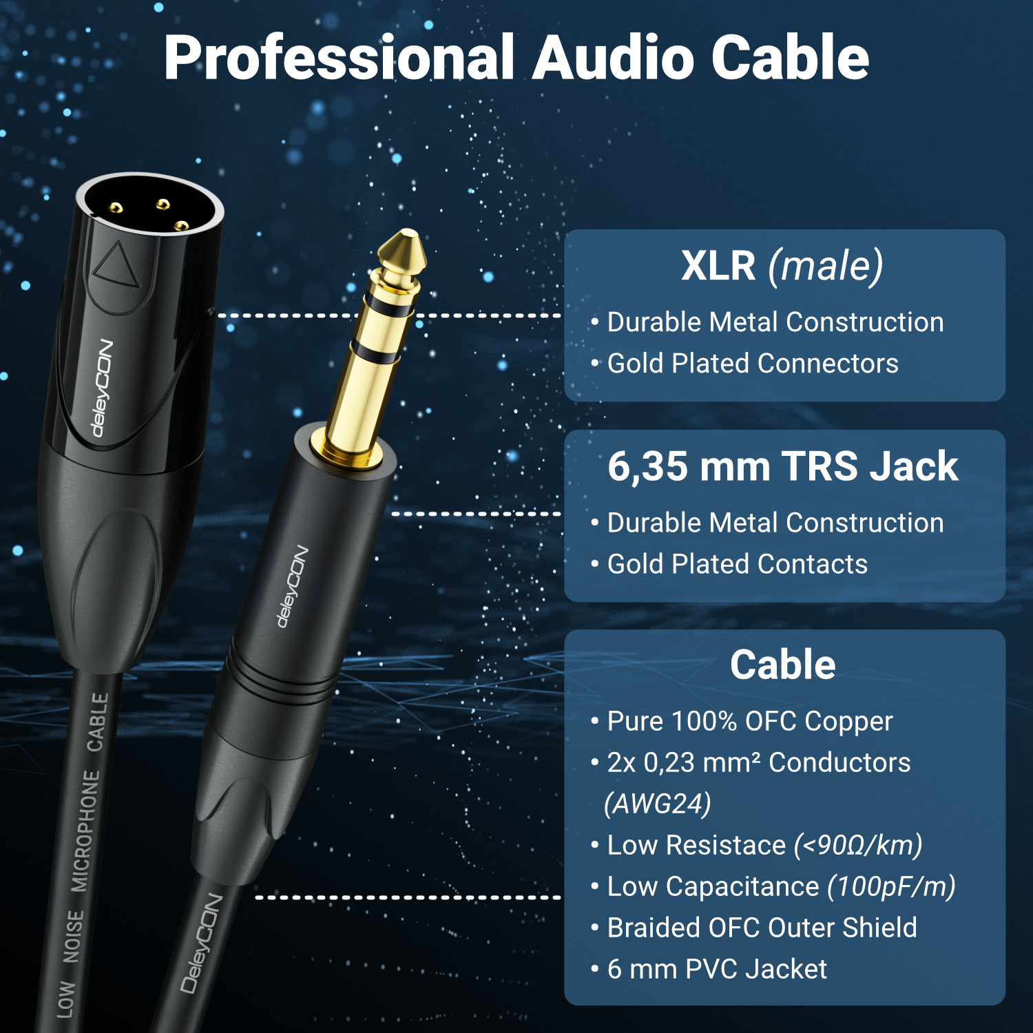 deleyCON XLR zu 6,3mm TRS Stereo Klinke Premium Audiokabel in Studioqualität