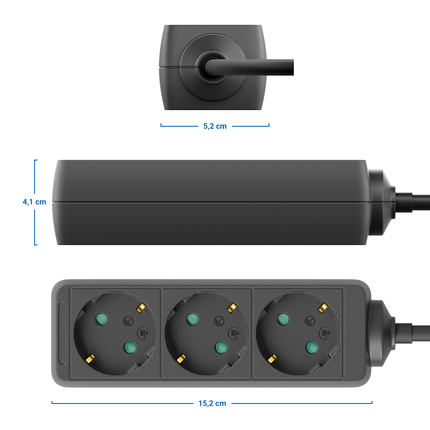 - Extra flacher Schutzkontakt-Stecker für platzsparendes Positionieren