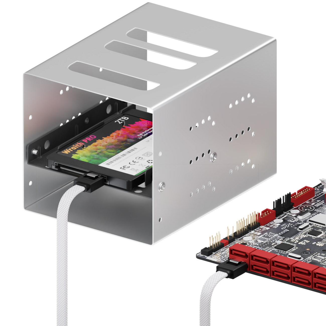 - Genormte, passgenaue SATA L-Stecker mit Arretierung