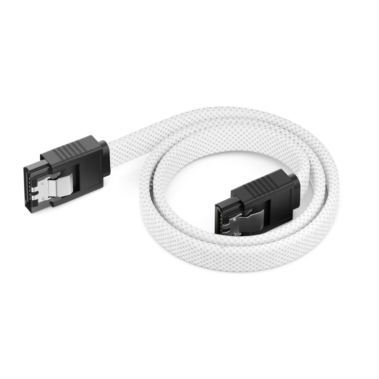 deleyCON 30cm SATA 3 Kabel Nylon 6Gbit/s HDD SSD 2 S-ATA L-Stecker Gerade Weiß