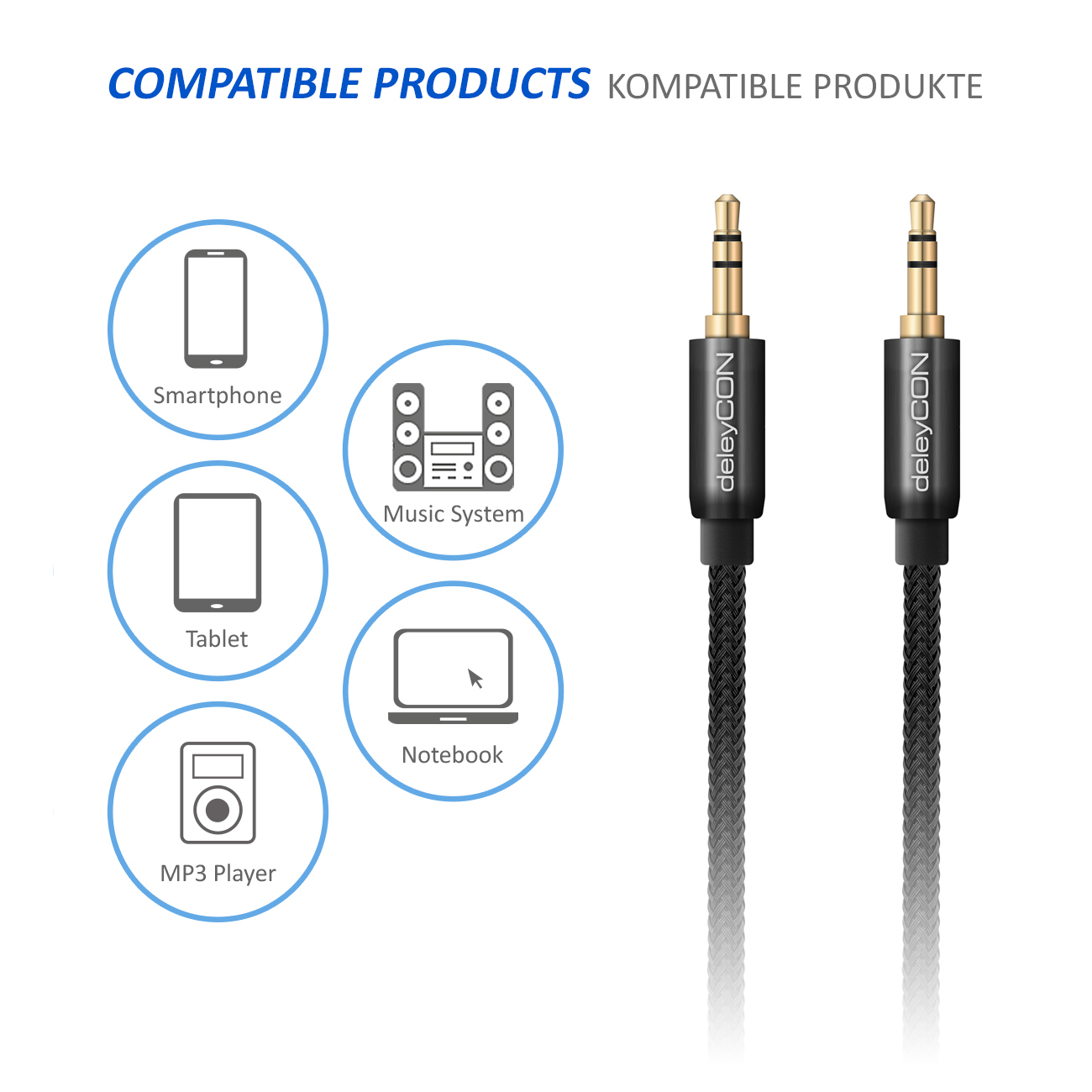 Mit dem hochwertigen deleyCON Klinken Kabel können Sie sämtliche Geräte verbinden, die über einen 3,5mm Klinken Anschluss verfügen.