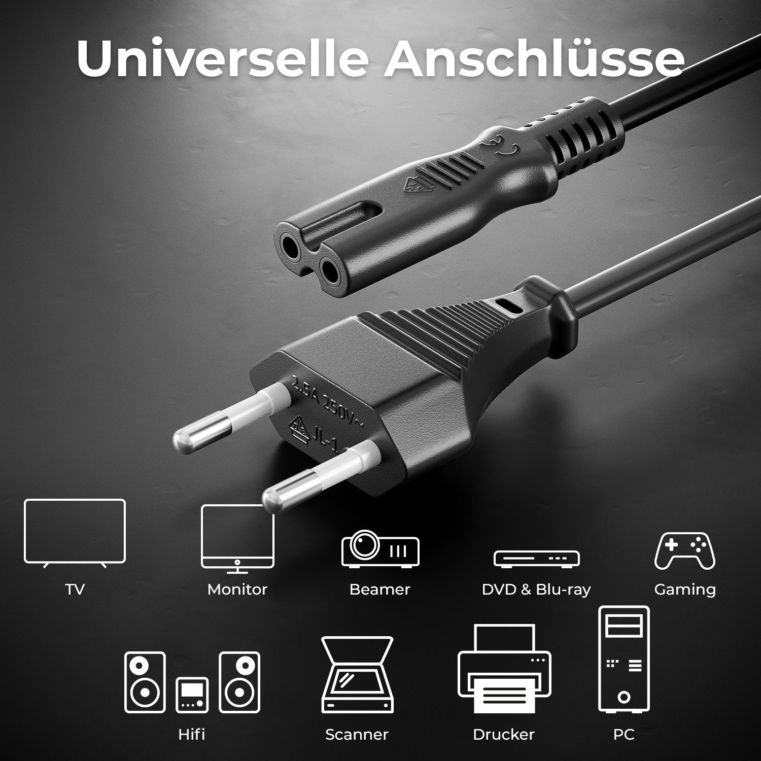 - Euro Stecker auf C7 Buchse // Genormte, passgenaue Anschlüsse // Euro-Netzkabel