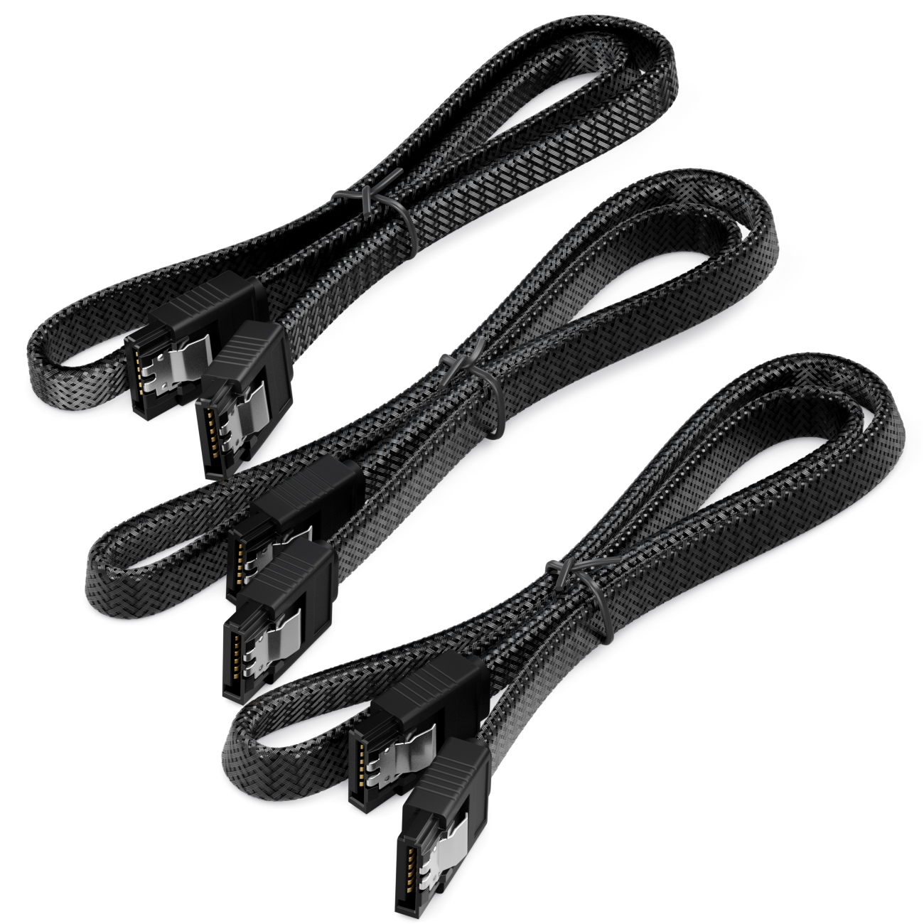 deleyCON 3x 60cm SATA 3 Kabel Nylon Set 6 Gbit/s 2 L-Stecker Gerade
