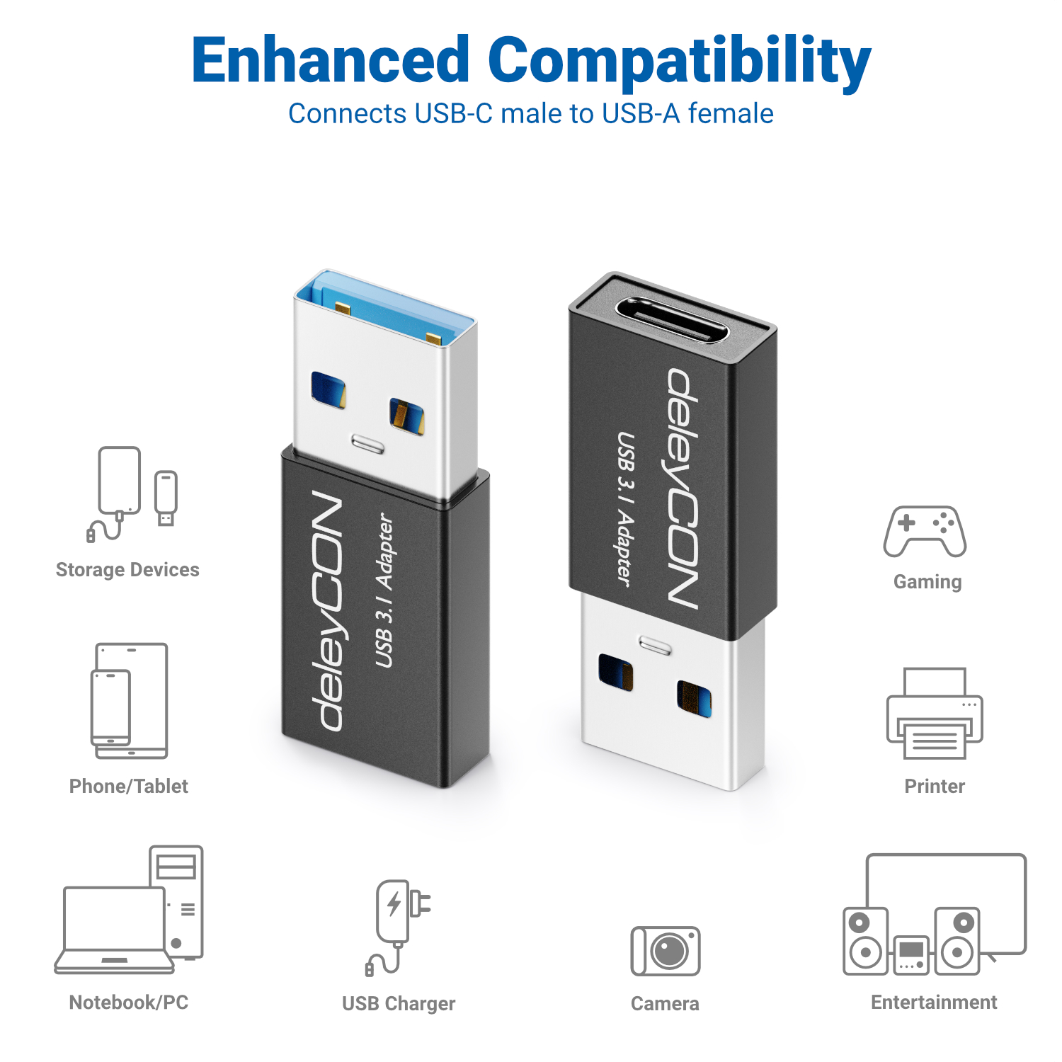 - deleyCON USB3.1 Adapter mit USB-C Buchse