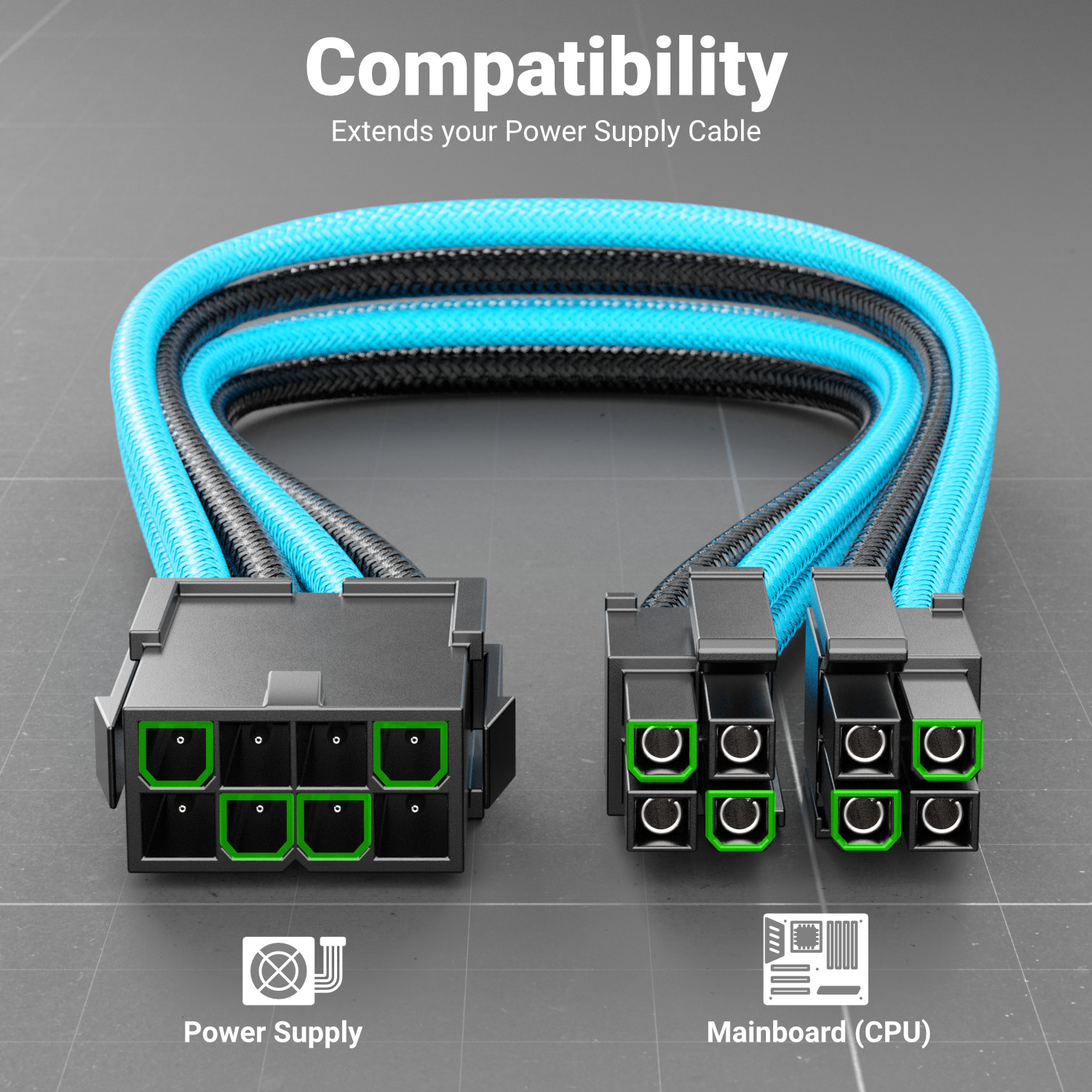 Dank des 4+4-Pin Designs ist das Kabel kompatibel mit einer Vielzahl von Mainboards und Prozessoren.
