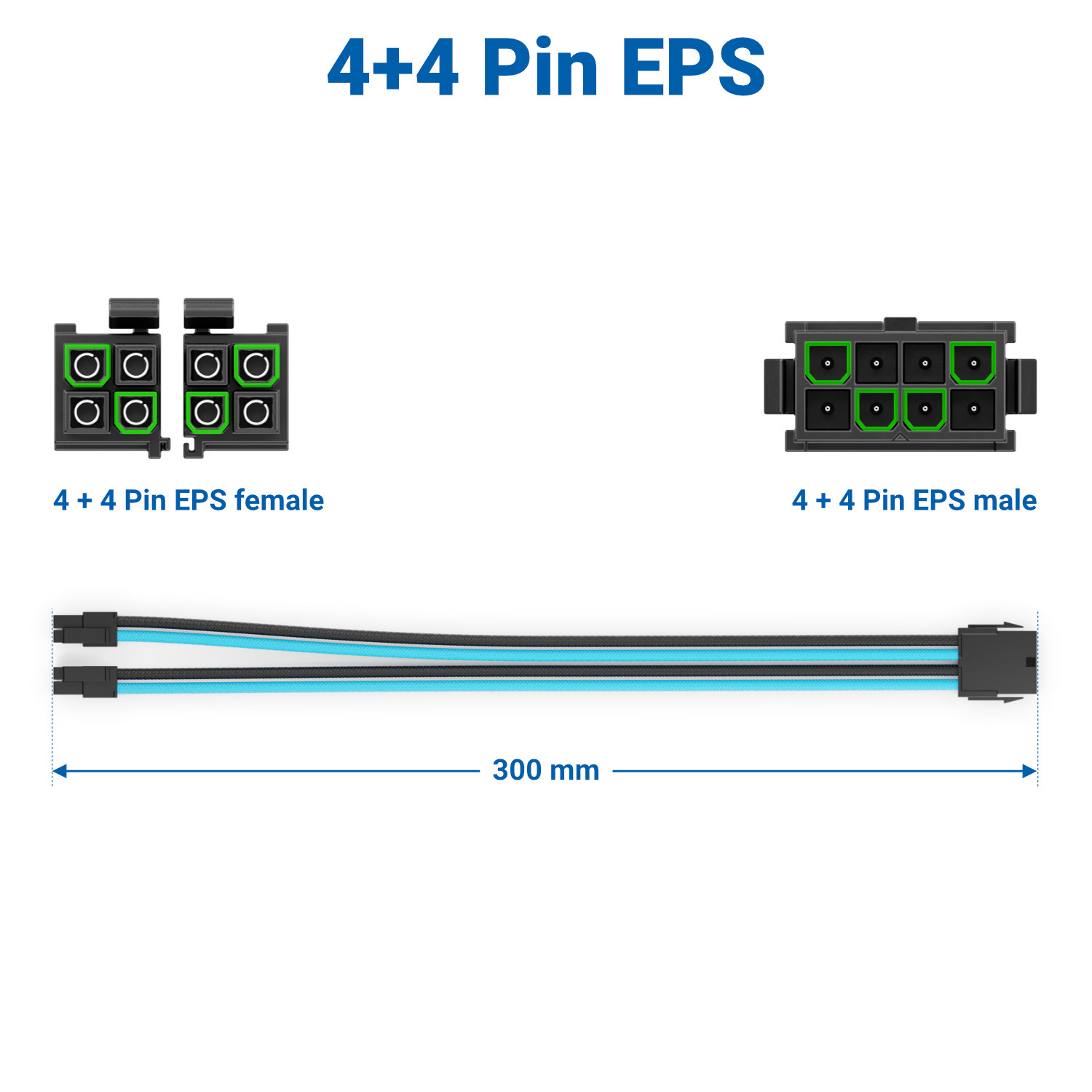 deleyCON 4+4-Pin EPS CPU Prozessor Strom Kabel Intern 30cm 18 AWG PSU Blau