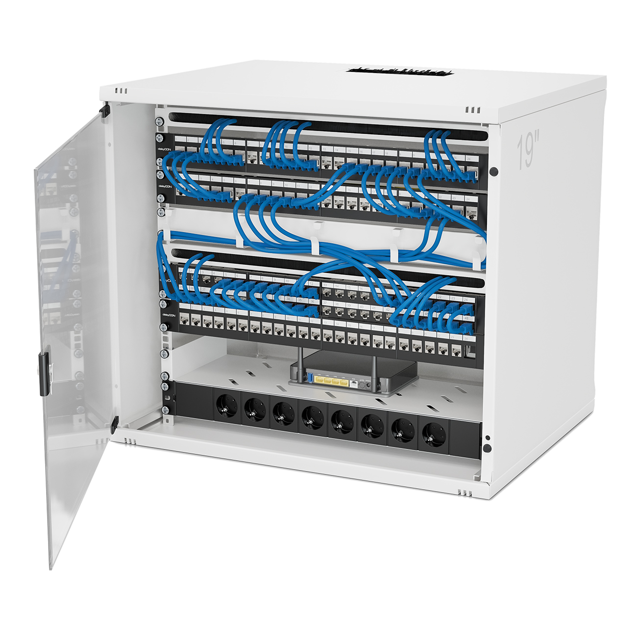 deleyCON CAT 6 Patchpanel 16 Port 19" Rack Server geschirmt 16x RJ45 Lichgrau