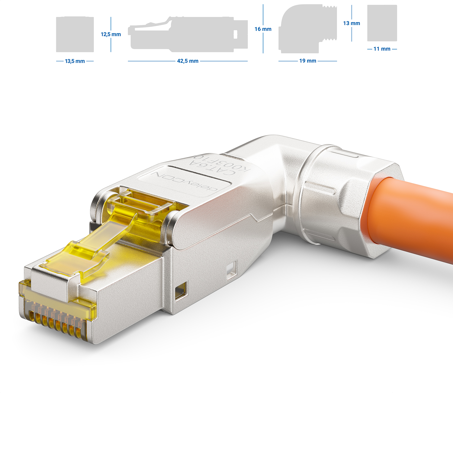 deleyCON 1x CAT6a Netzwerkstecker 90° Winkel RJ45 10Gbit/s Stecker für Rohkabel