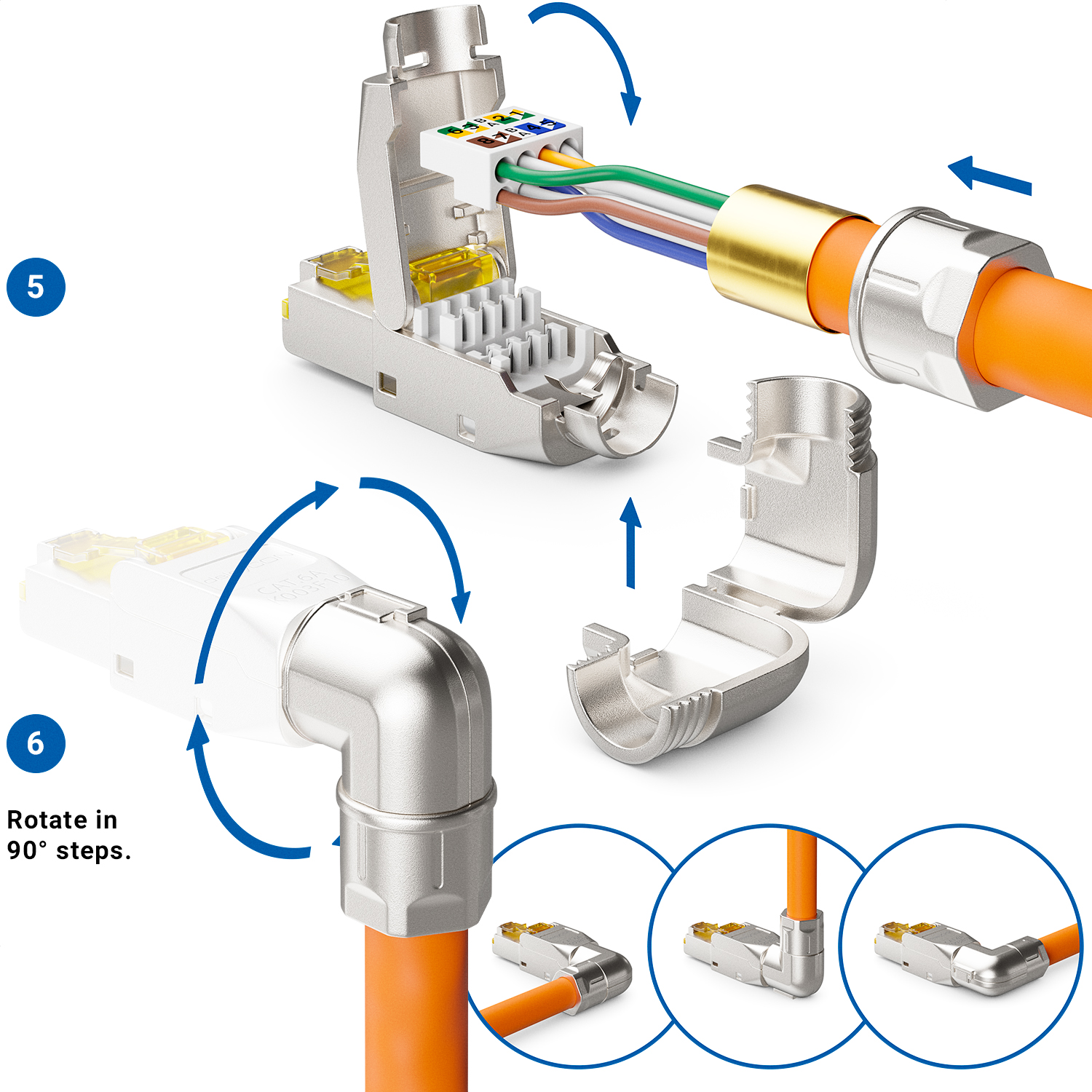 Völlig werkzeuglos können aus Netzwerk Rohkabeln individuelle RJ45 LAN Patchkabel erstellt werden. Schnell konfektioniert und universell, passgenau einsetzbar.