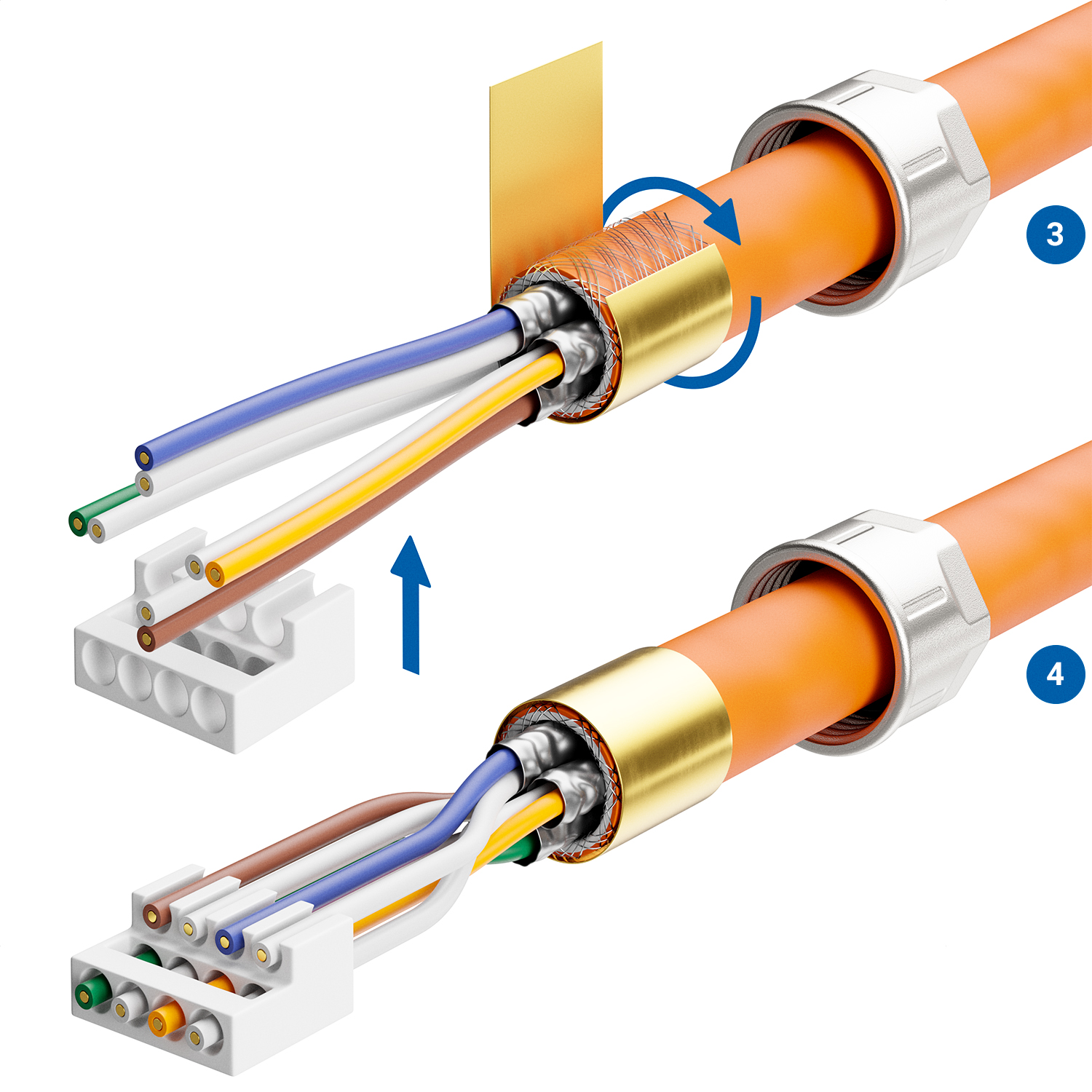 - Kabeladern entsprechend Farbcode positionieren