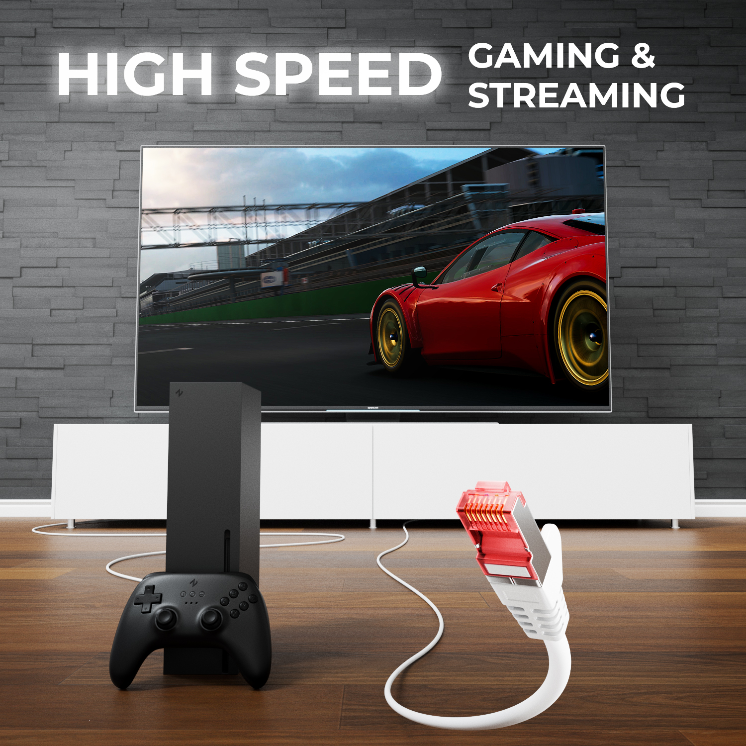 Die genormten RJ45 Netzwerk-Stecker gewährleisten den Einsatz an einer Vielzahl von Geräten mit RJ45 Netzwerkanschluss. Dank besonderem Knickschutz sind Stecker und Kabel zu einer sehr stabilen Einheit verbunden, so gehören Wackelkontakte der Vergangenheit an.