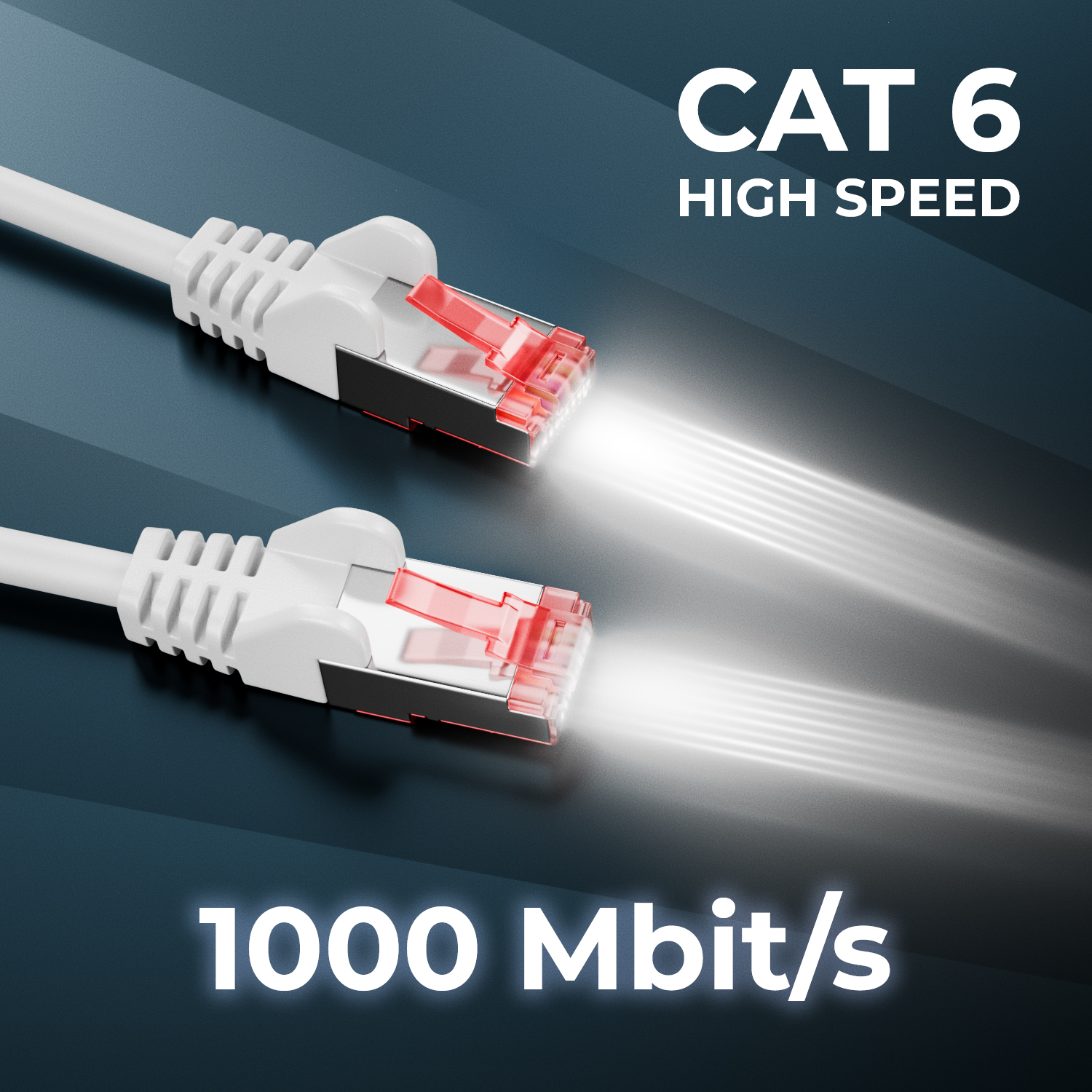 deleyCON CAT-6 Netzwerkkabel sind für maximale Übertragungsgeschwindigkeiten konzipiert. (Gigabit LAN 10/100/1000 Mbit). Anschlüsse: 2x genormte RJ45 Netzwerk-Stecker.