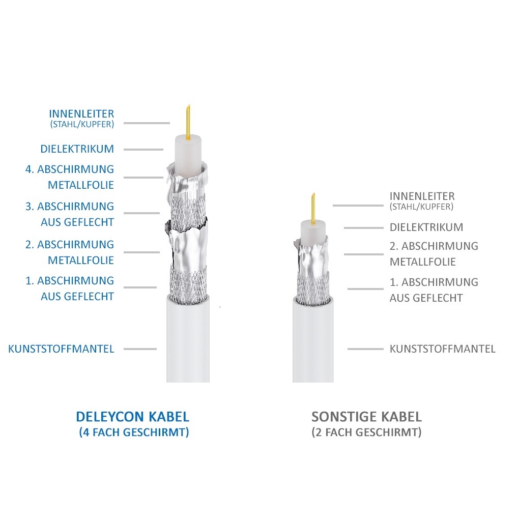 deleyCON PREMIUM HQ Digitale SAT Koaxial-Antennenkabel werden nach den neuesten technischen Standards gefertigt.