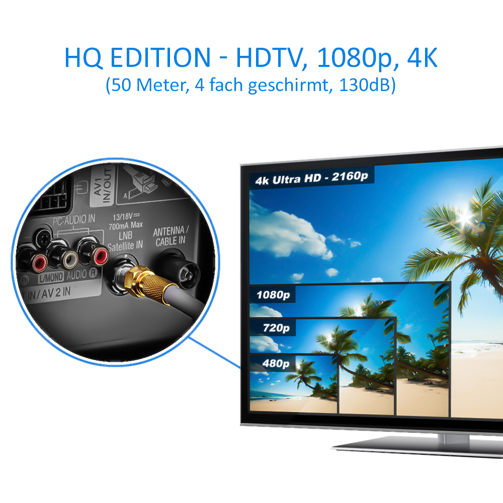 Dank 130dB und Stahl/Kupfer Innenleiter prädestiniert für eine optimale Signalqualität.