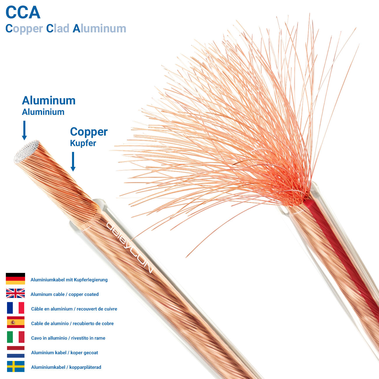 - Innenleiter: CCA / Kupferüberzogenes Aluminium