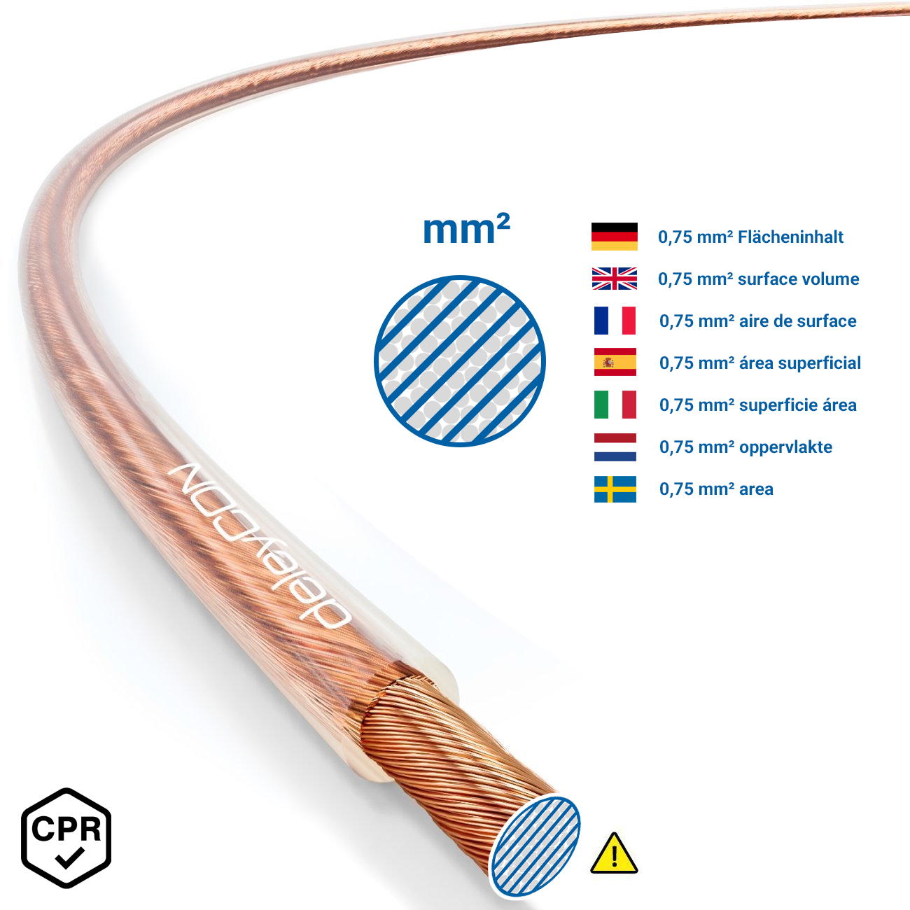 deleyCON 50m Lautsprecherkabel 2x0,75mm² CCA 24x0,20mm Litze BauPVO Transparent