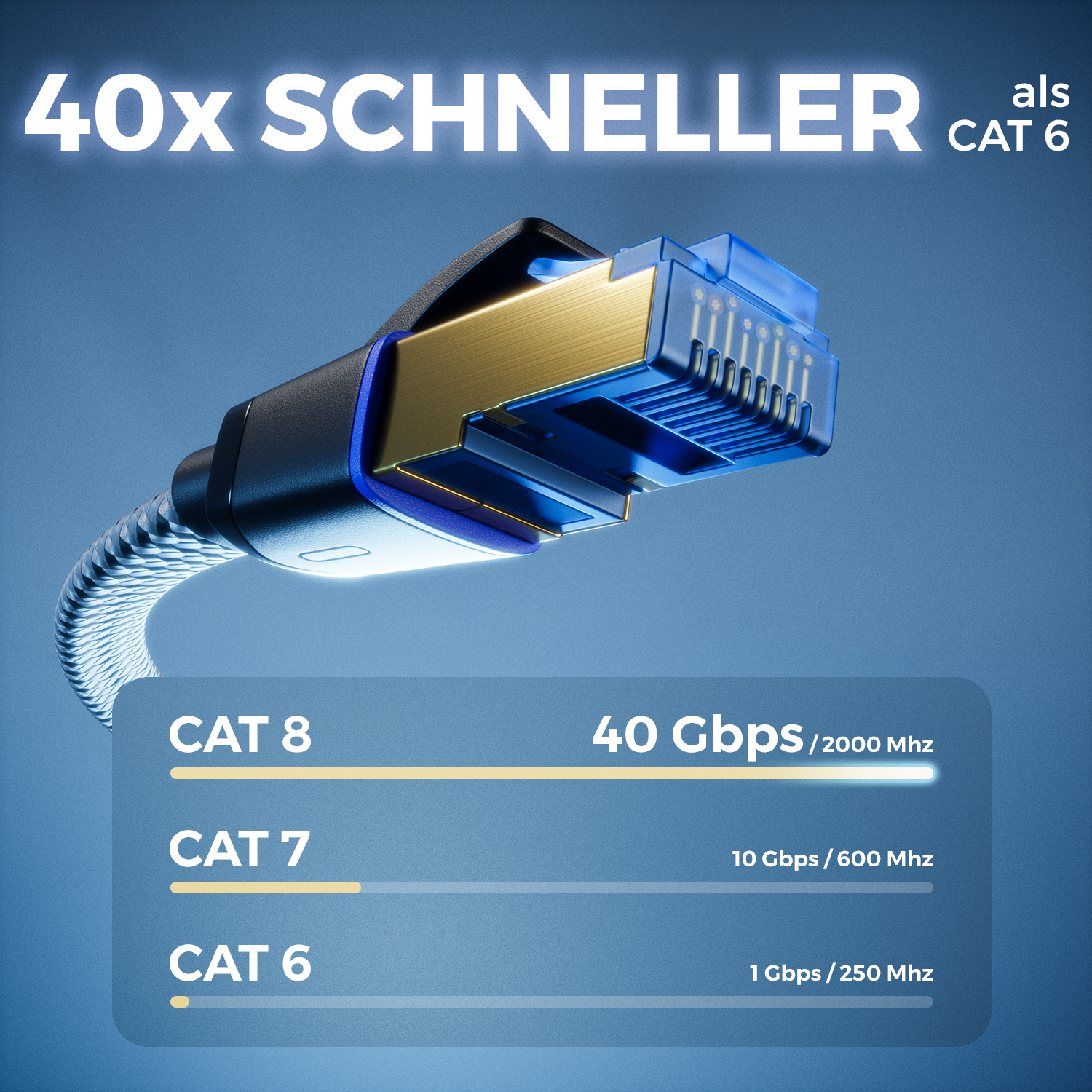 CAT8 Flachkabel U-FTP Nylon – Netzwerkkabel für 40 Gbit/s