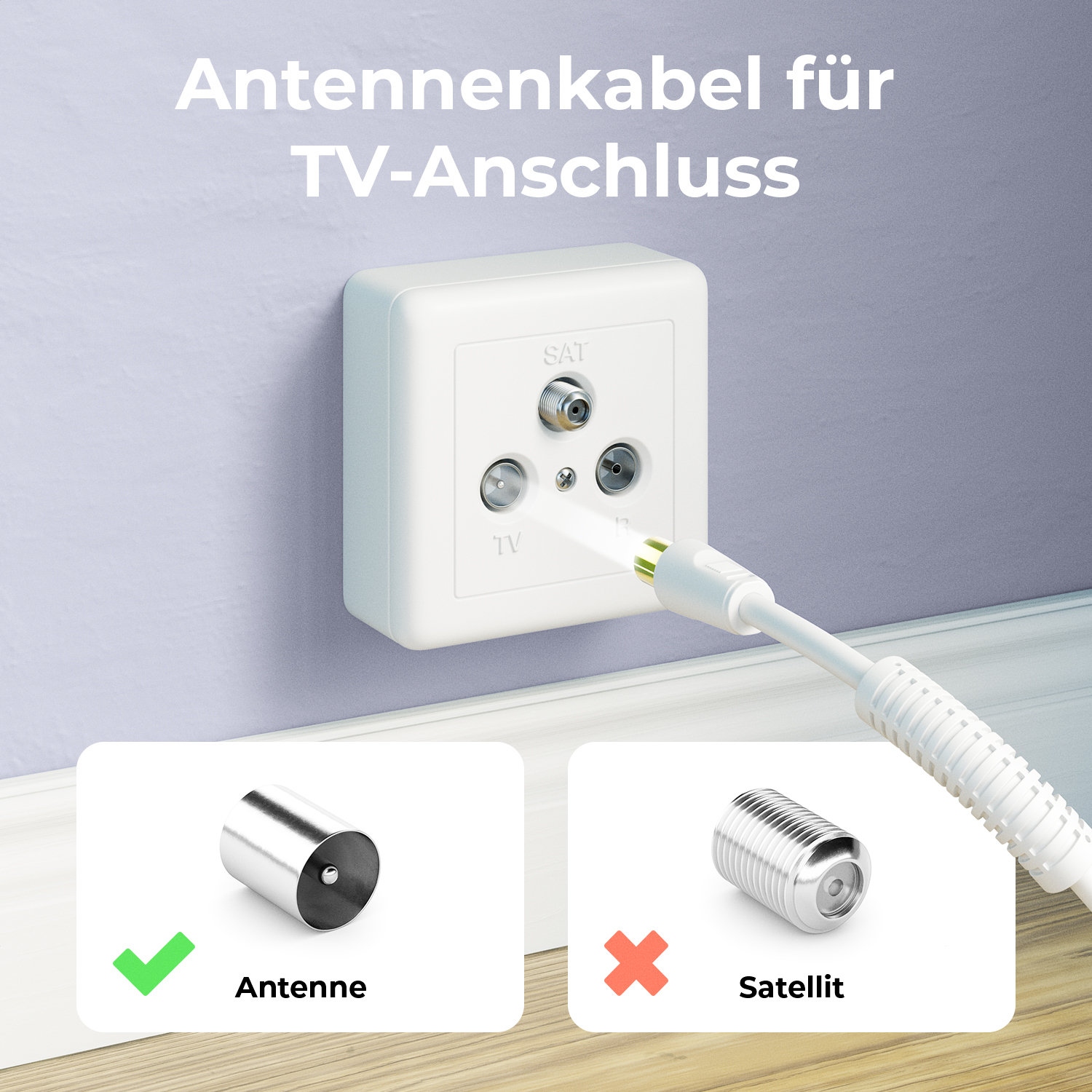 deleyCON TV Antennenkabel können an allen Geräten verwendet werden, die über einen Coaxial TV Antennenkabel Anschluss verfügen. Dazu zählen z.B.: TV, Fernseher, Media-Player, TV-Receiver, Radio etc.