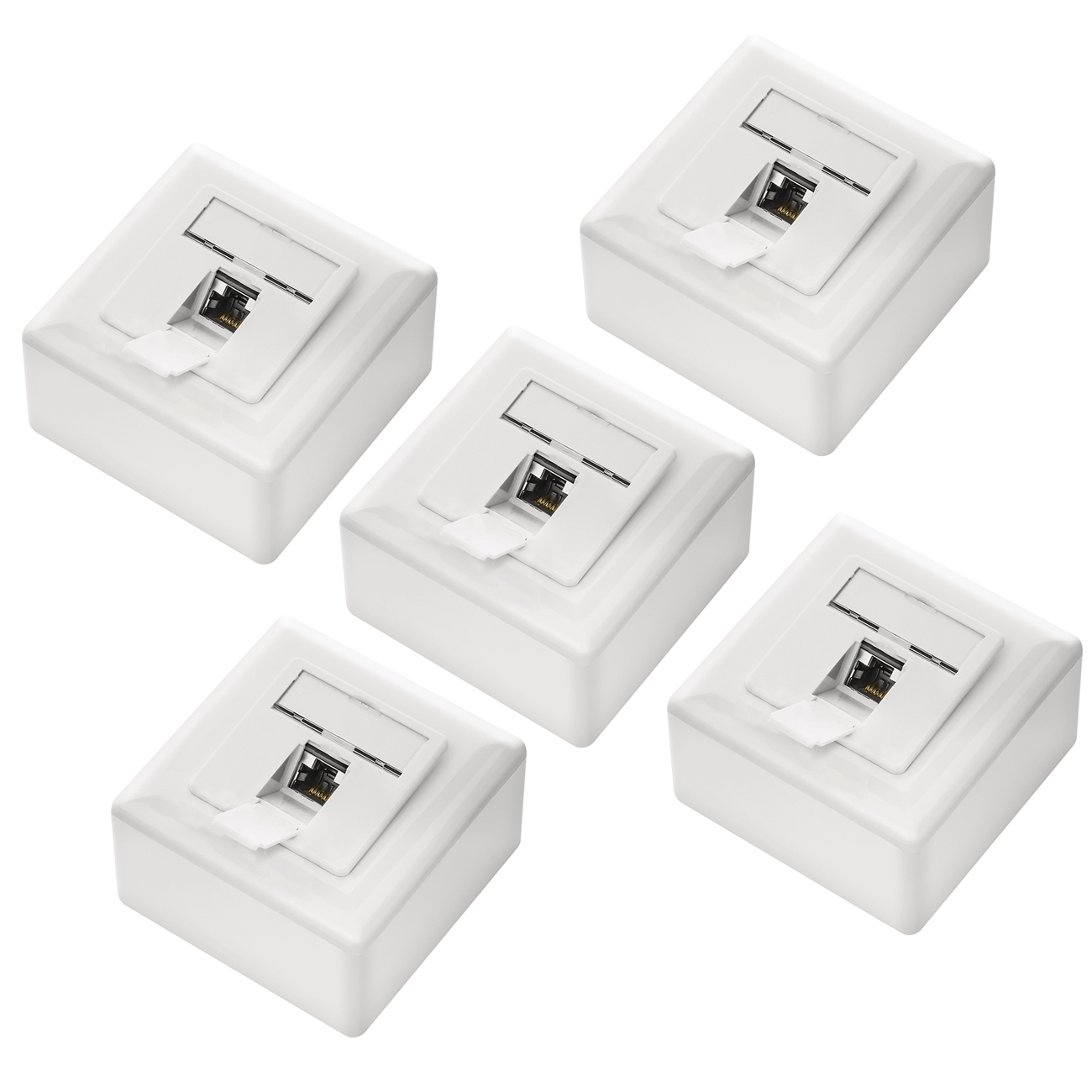 deleyCON SET 5x Cat5e Netzwerkdose 2 Port Weiß / Kombidose [Auf + Unterputz]