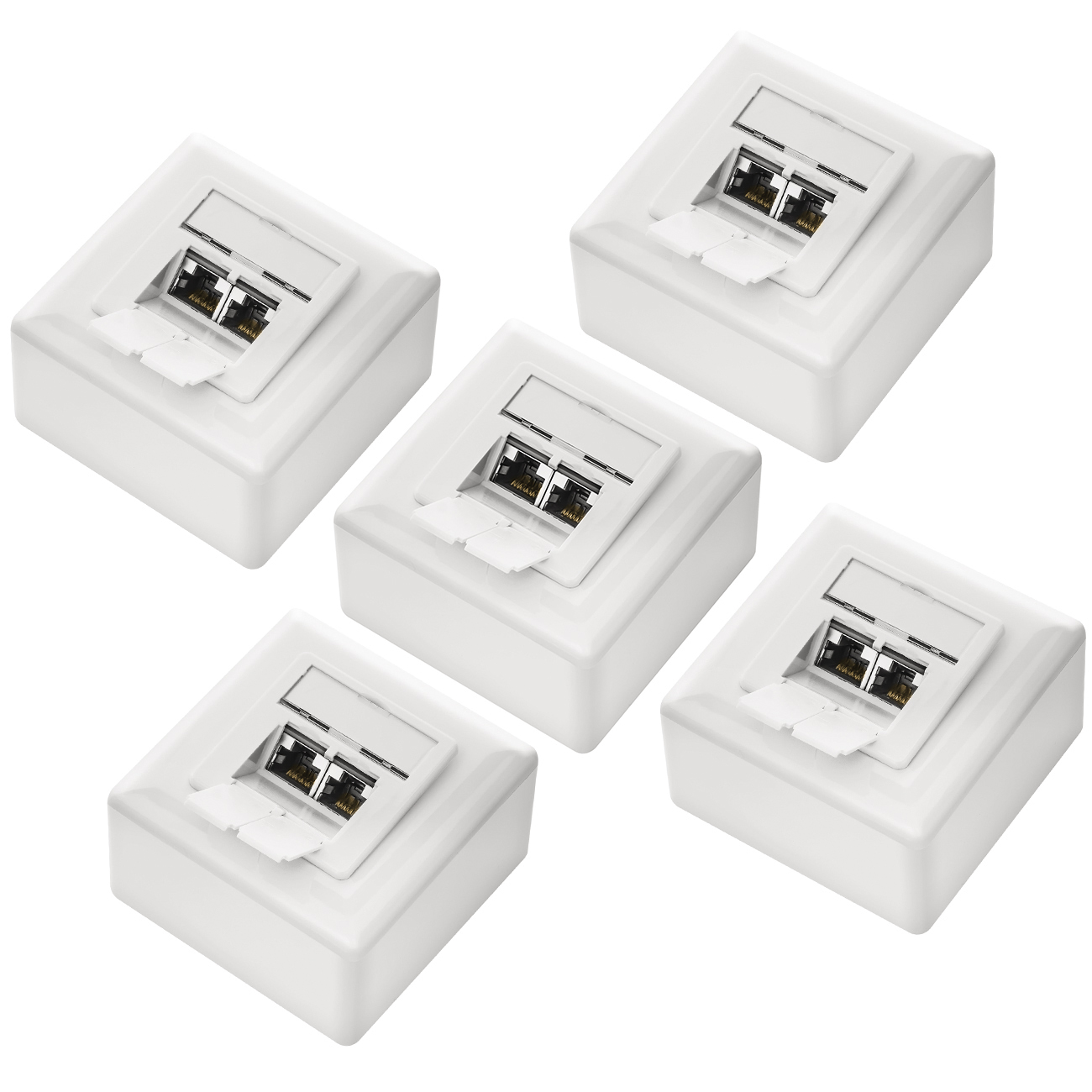 deleyCON SET 5x Cat5e Netzwerkdose 2 Port Weiß / Kombidose [Auf + Unterputz]