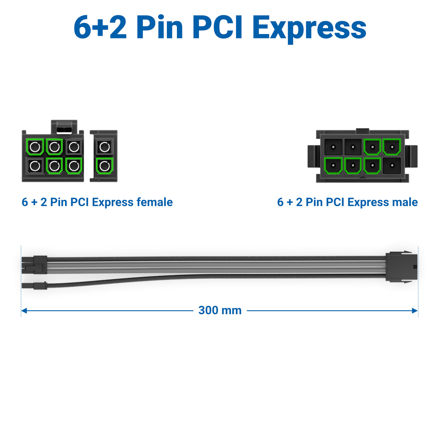 - Einfache und sichere Verbindung zwischen PC-Netzteil und Grafikkarte