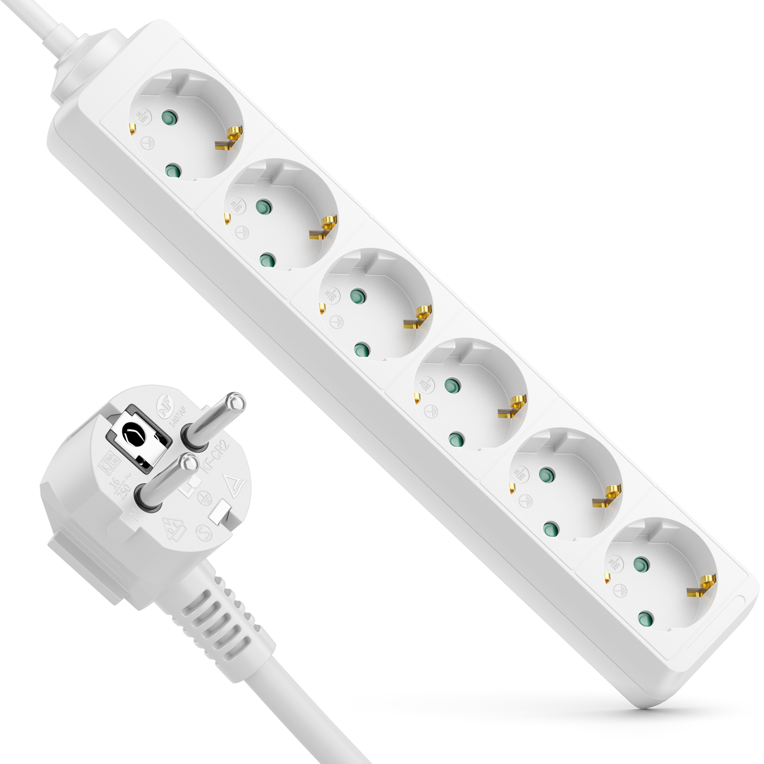 deleyCON 6 Fach Steckdosenleiste Mehrfachsteckdose Steckerleiste 1,4 m Weiß