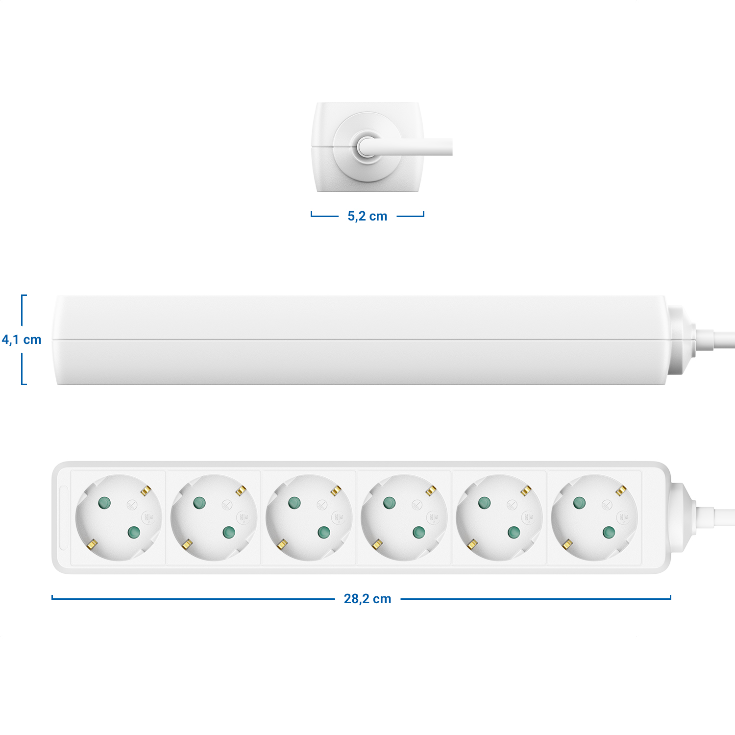 - Extra flacher Schutzkontakt-Stecker für platzsparendes Positionieren