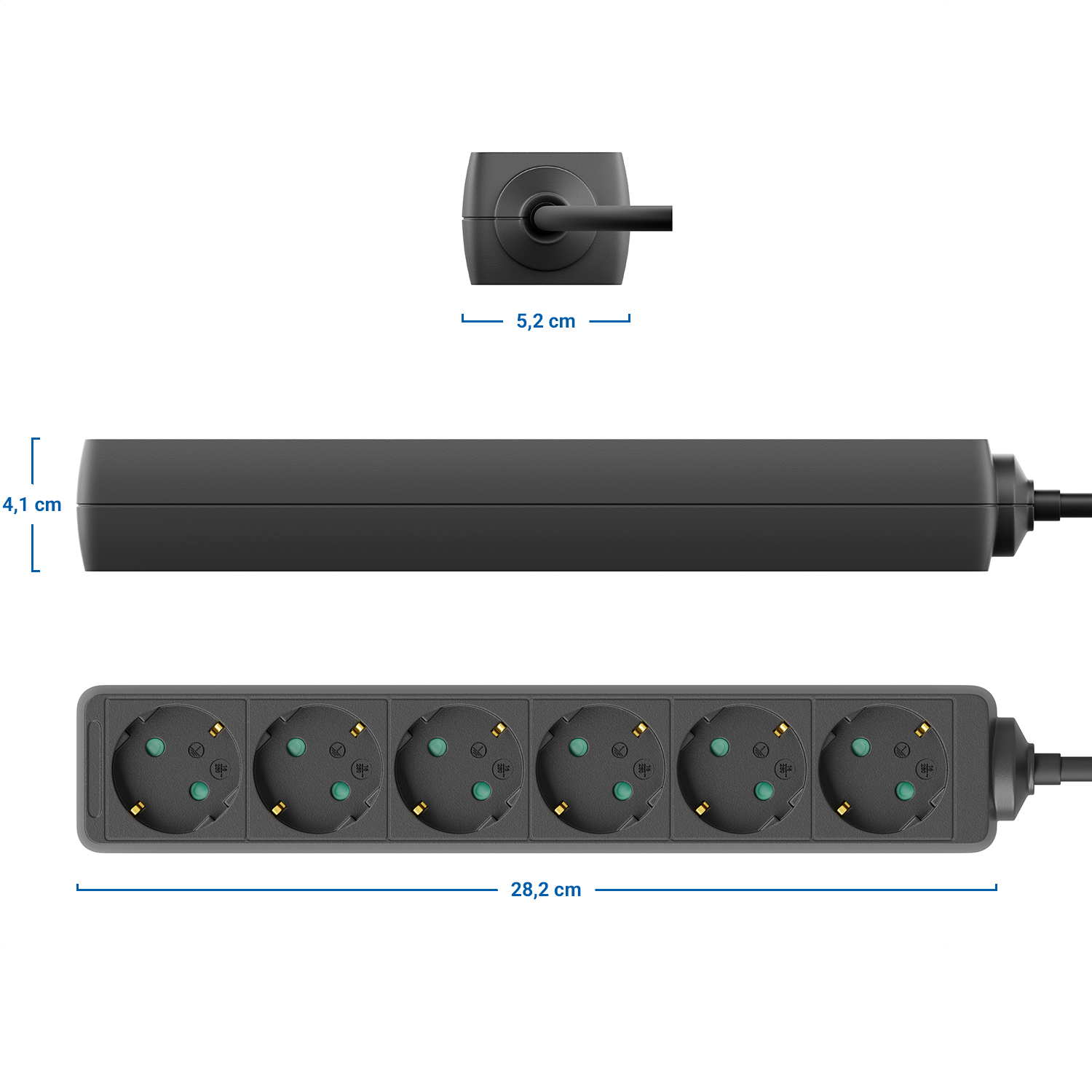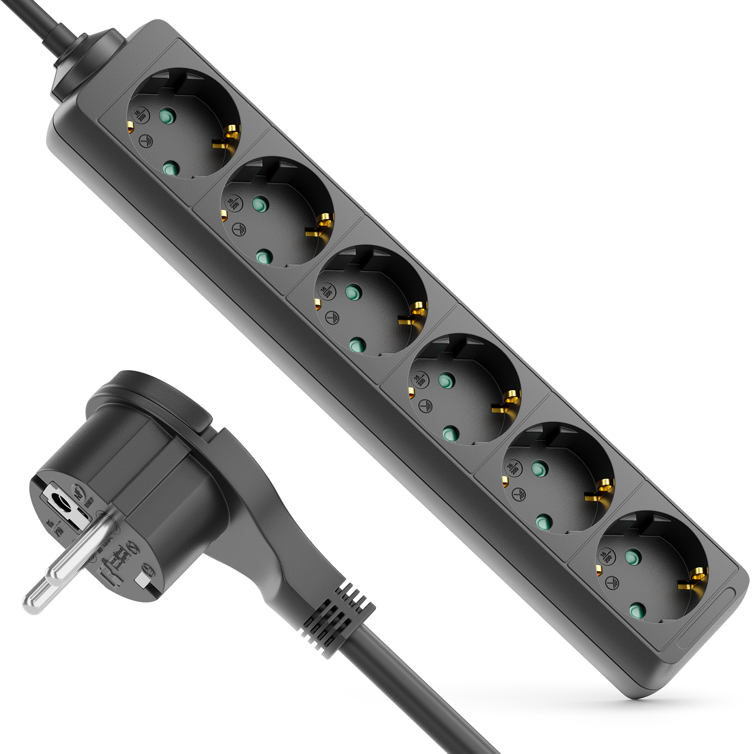 - Extra flacher Schutzkontakt-Stecker für platzsparendes Positionieren