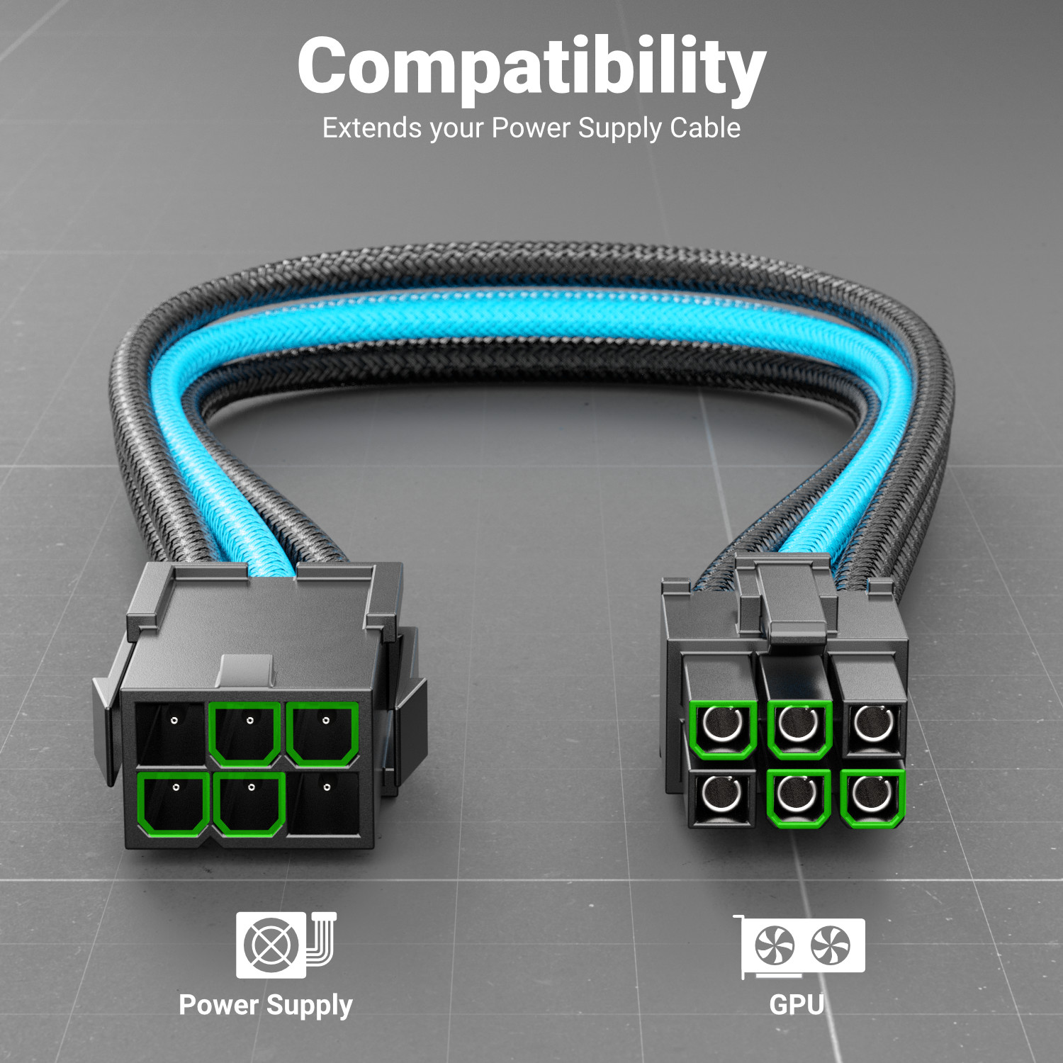 - Einfache und sichere Verbindung zwischen PC-Netzteil und Grafikkarte