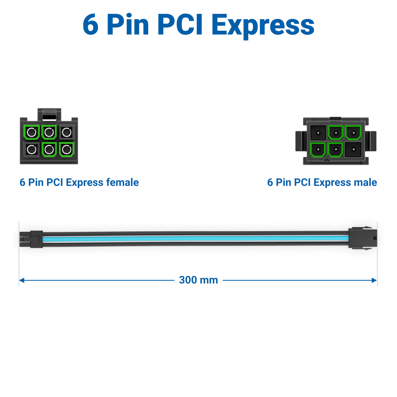 deleyCON 6 Pin PCI Express GPU Grafikkarte Strom Kabel Intern 30cm 18 AWG Blau