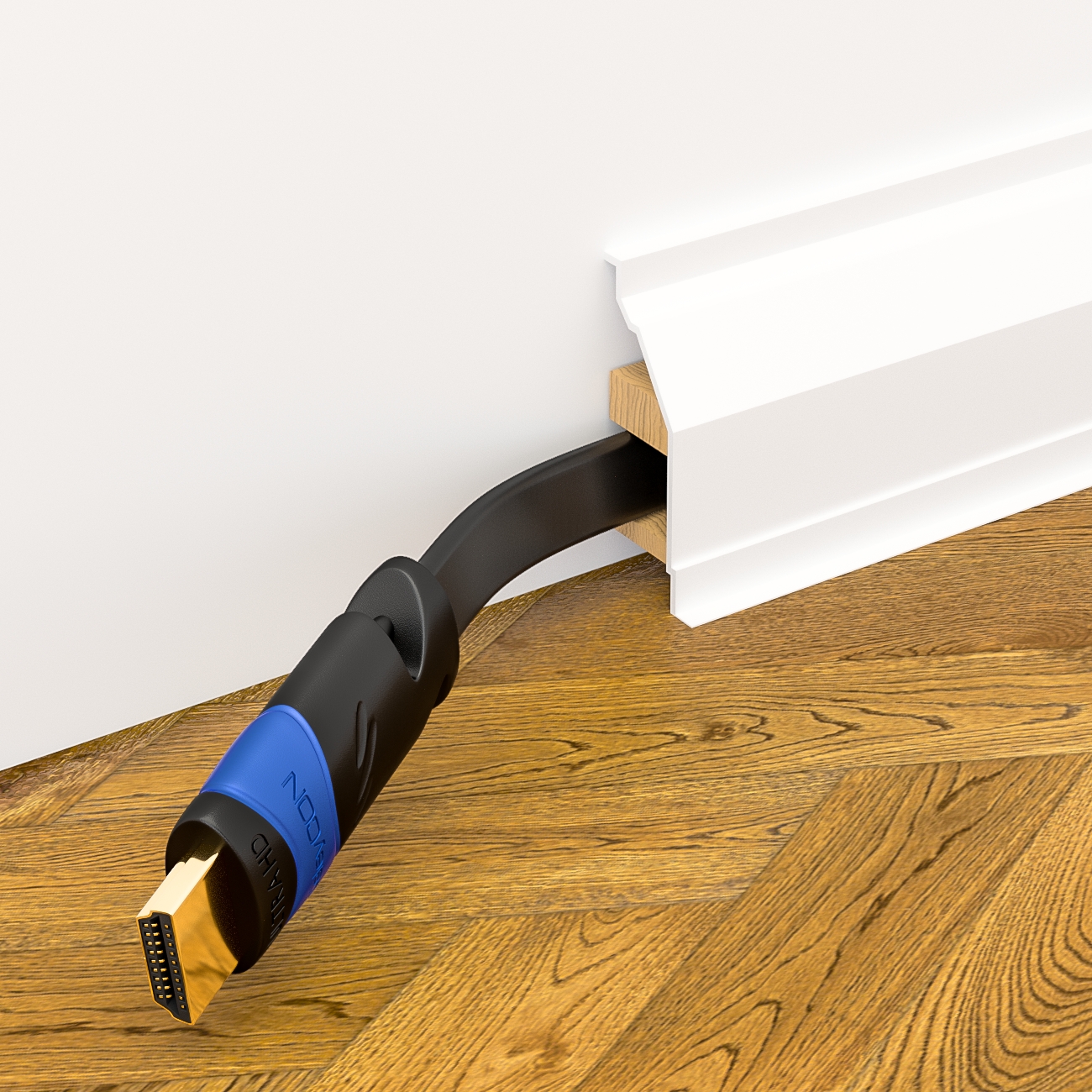 Dieses Kabel ist besonders Flach und ist somit perfekt zum Verlegen unter Teppich oder in Kabelkanälen geeignet. Da das Kabel so dünn ist, lässt es sich sehr gut biegen und um Ecken verlegen.