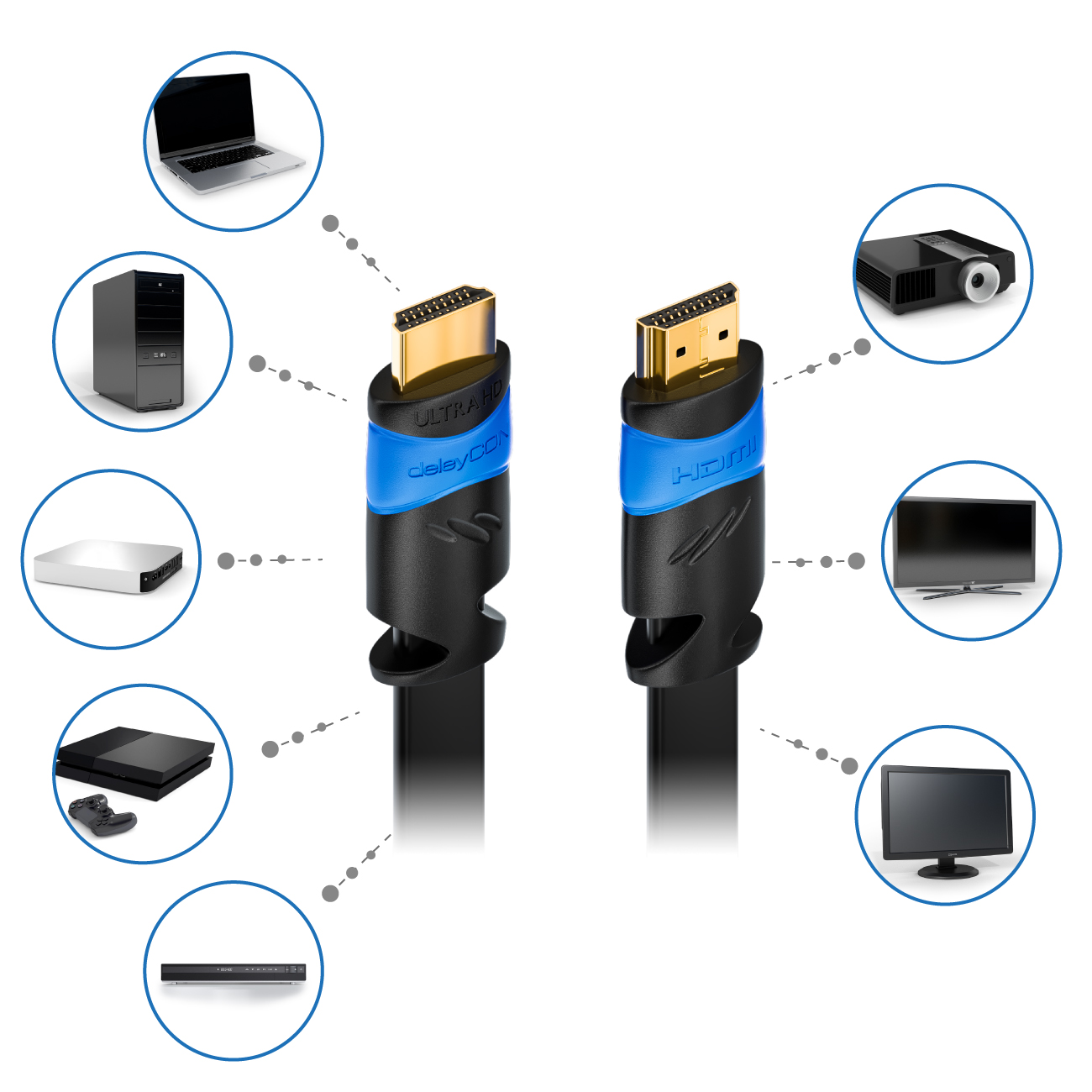 Egal ob für TV, Fernseher, LCD, LED, OLED, Plasma, TFT, Monitor, Beamer, PC, Computer, Laptop, Blu-Ray Player, Spielekonsole, PS3, PS4 oder XBOX - deleyCON HDMI Kabel sind prädestiniert für ausgezeichnete, kristallklare Bild- und Tonübertragung.