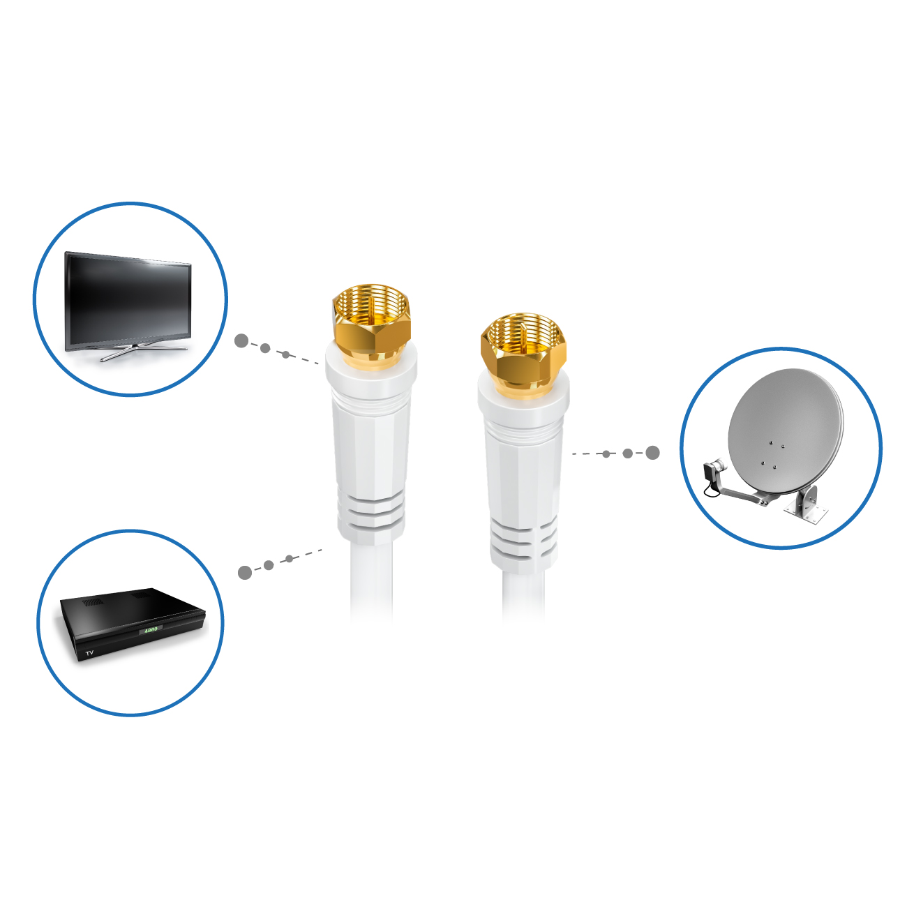 deleyCON SAT TV Antennenkabel Satellitenkabel können an allen Geräten verwendet werden, die über einen Coaxial F-Stecker Antennenkabel Anschluss verfügen.