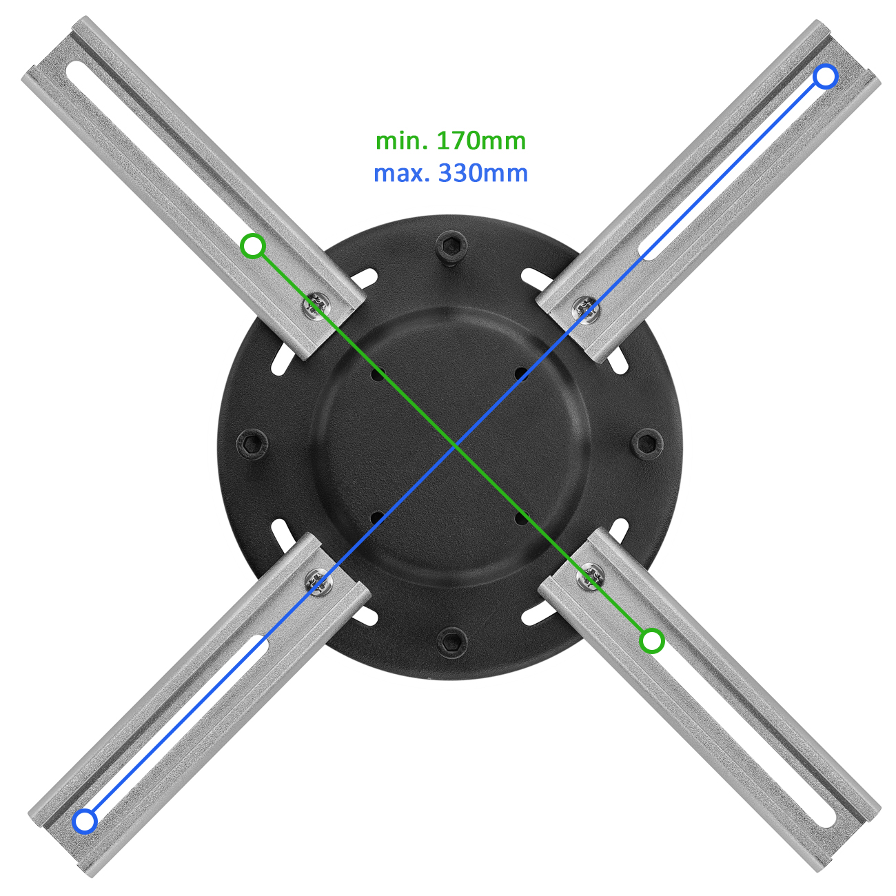Die Lochabstände zur Beamer / Projektor Befestigung können universell eingestellt werden (min. 170mm / max. 330mm).