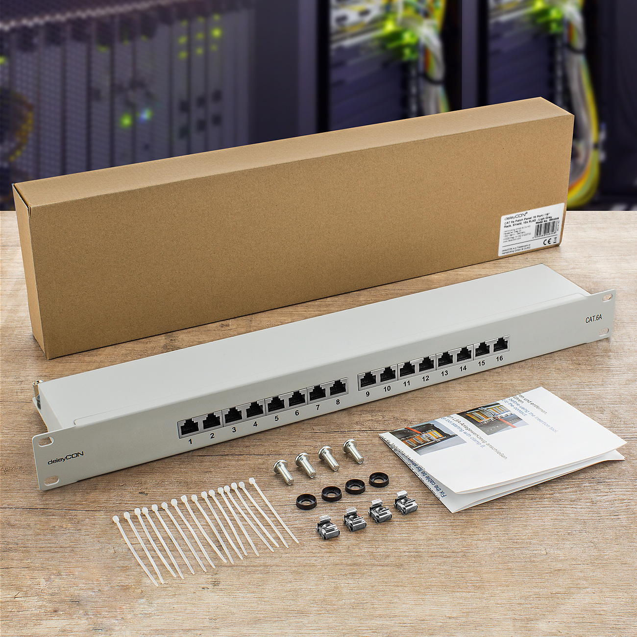 1x deleyCON CAT6a Patchpanel 16-Port