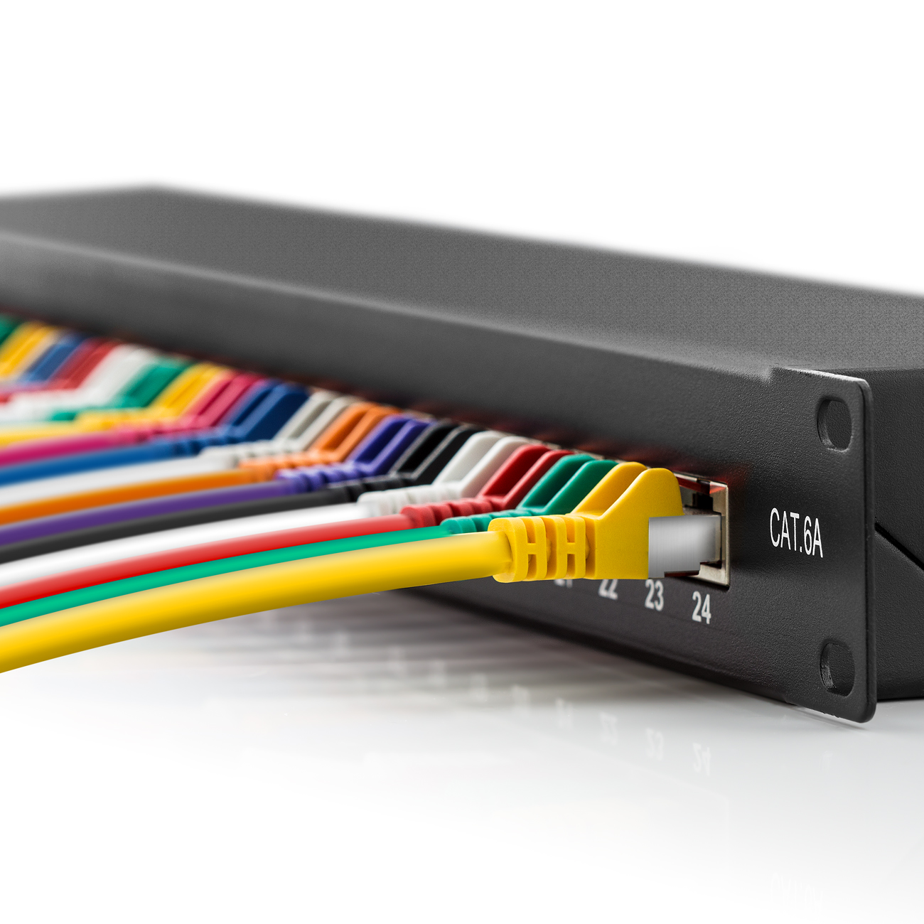Das Patchpanel besitzt an der Vorderseite 24x RJ45 Netzwerkbuchsen, über diese können Sie schnell und einfach eine Vielzahl von Endgeräten per Netzwerkkabel anschließen. An der Rückseite des Patchpanels können Sie unkompliziert Netzwerk Verlegekabel über LSA+ anschließen. Das deleyCON CAT6a Patchpanel ist selbstverständlich zu allen gängigen Netzwerkkabel-Normen kompatibel. (z.B. CAT5e, CAT6, CAT6a, CAT7)