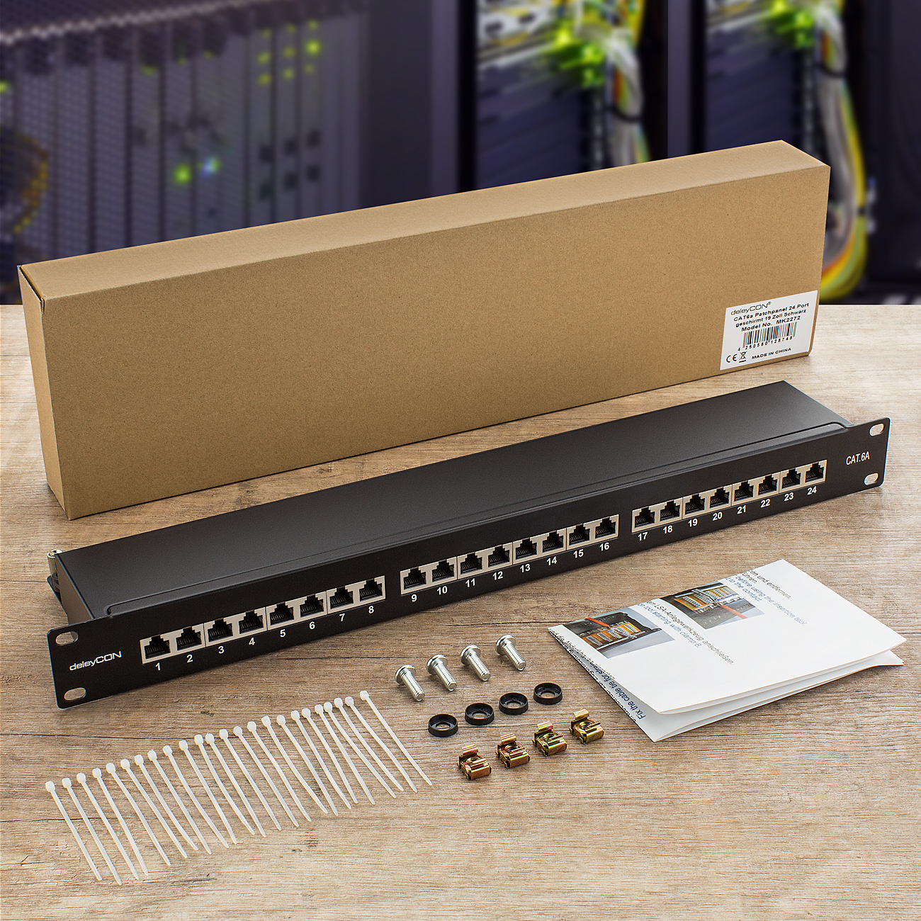 1x deleyCON CAT6a Patchpanel 24-Port