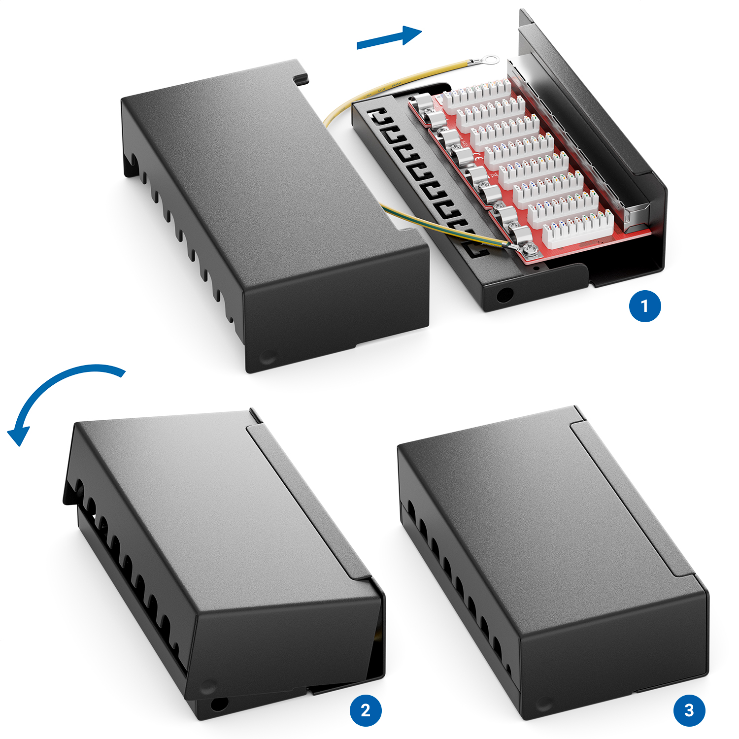 - 1x deleyCON CAT6a Patchpanel 8-Port