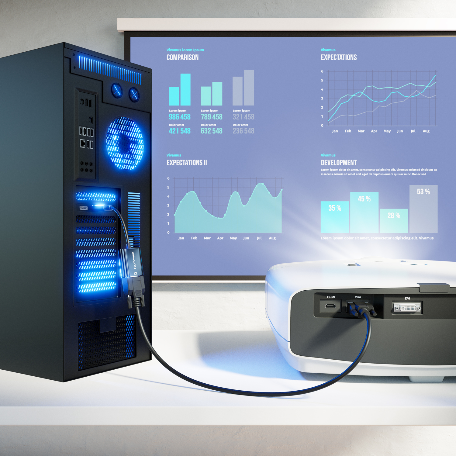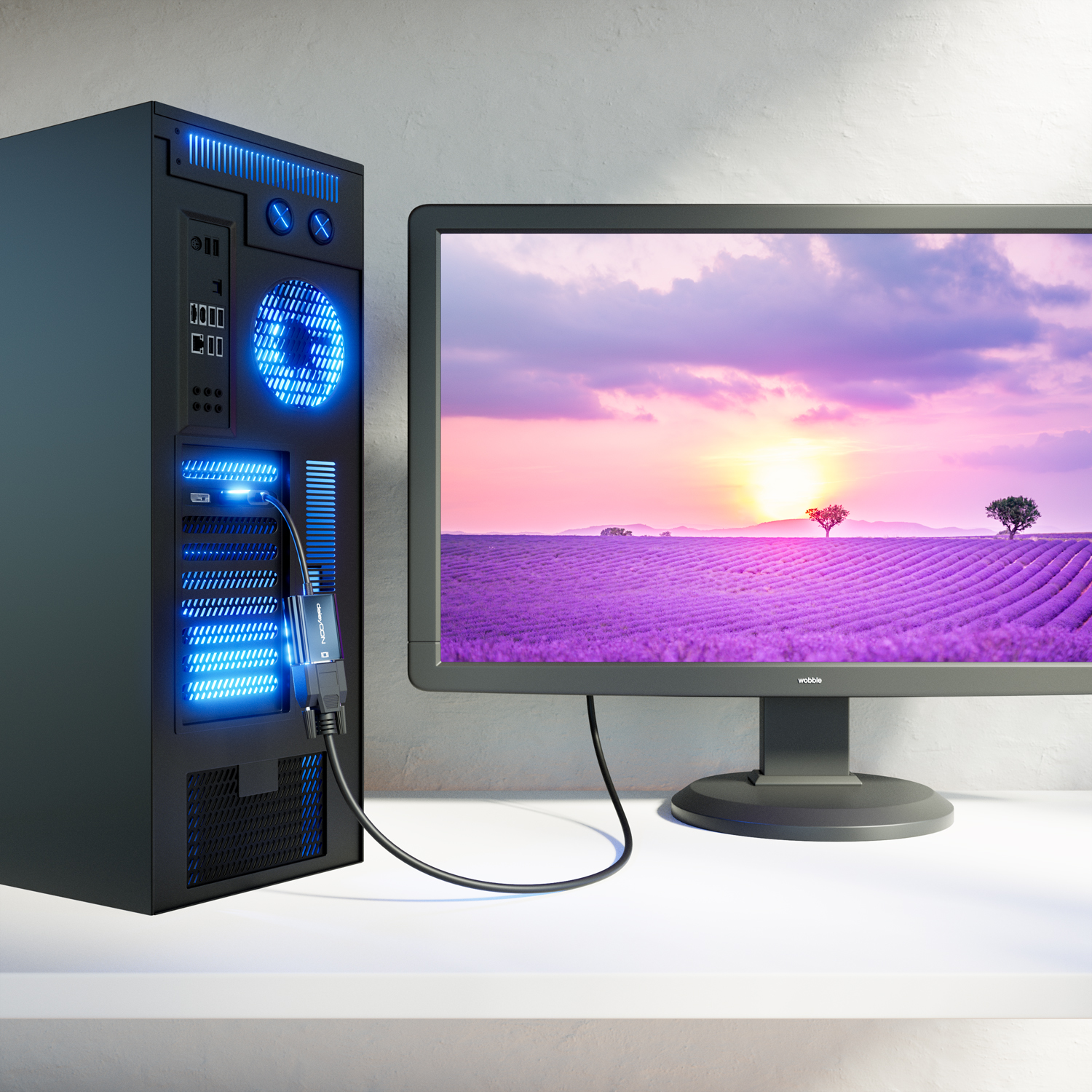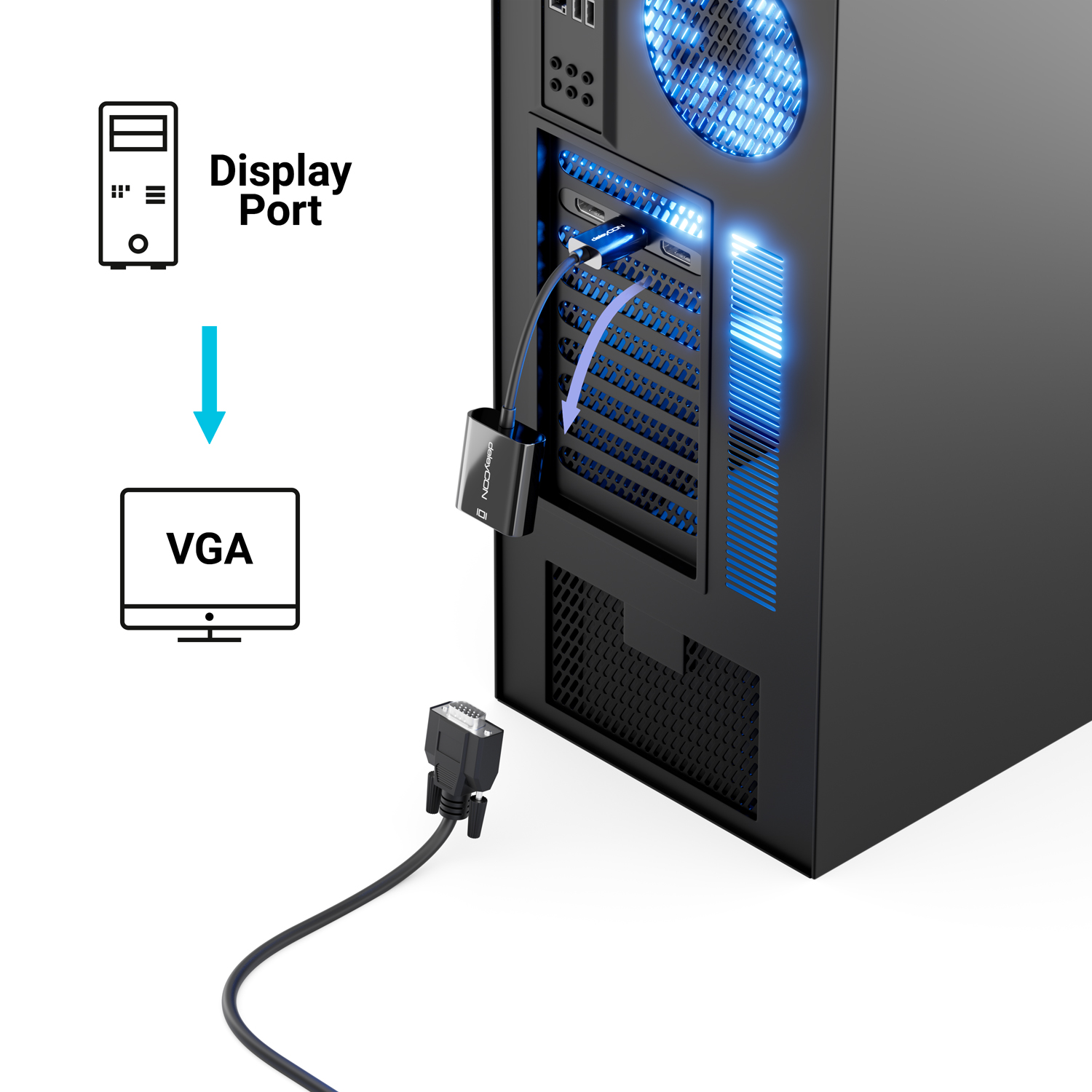 Mit dem vielfältig einsetzbaren DisplayPort auf VGA Adapterkabel von deleyCON lassen sich im Handumdrehen unzählige VGA Geräte an einen DisplayPort Anschluss verbinden.